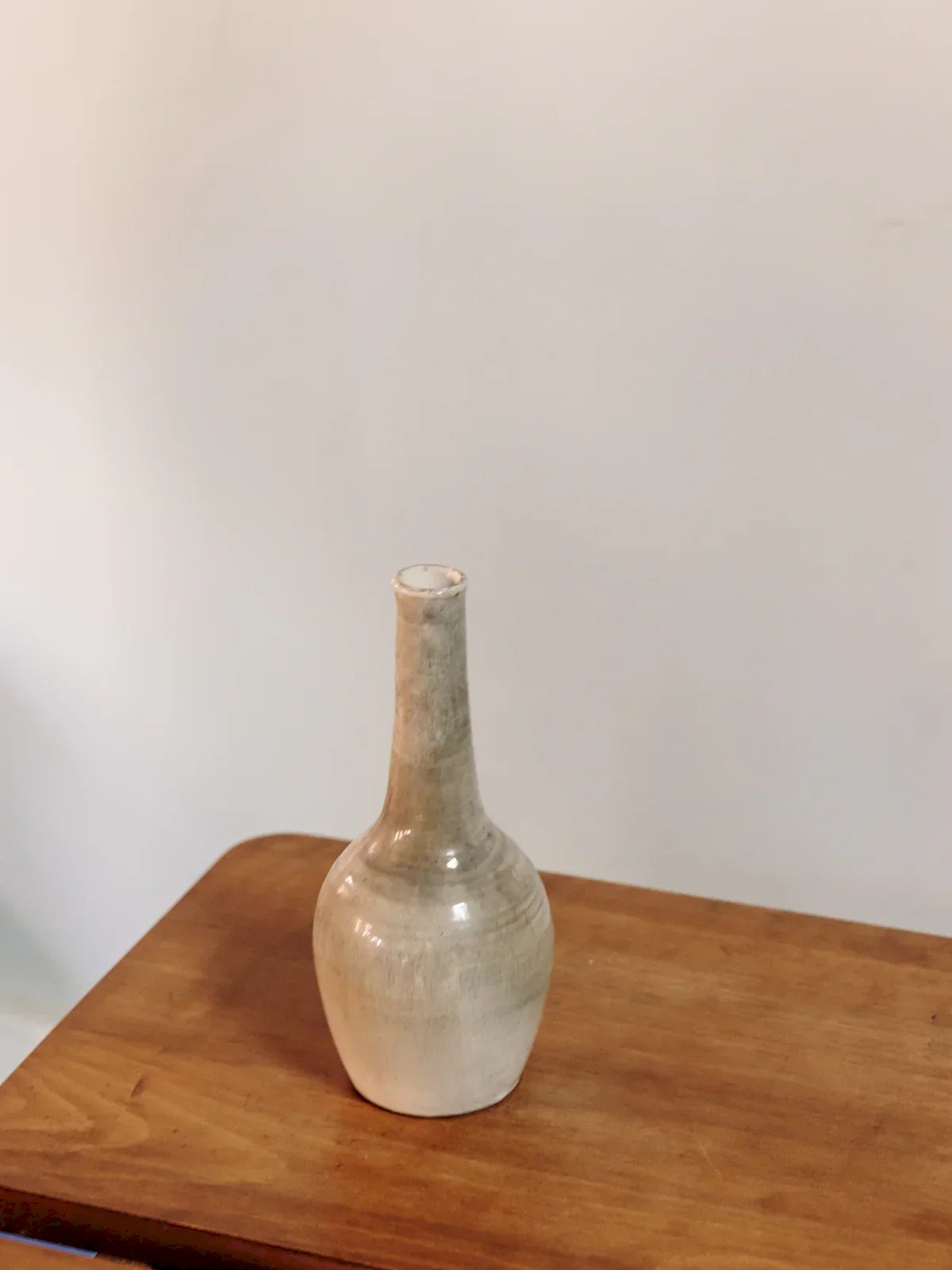 Enhance your interior with this gray glazed ceramic vase (single flower holder) with a tall and slender silhouette, its neck delicately tapered opening to a round and stable base. The gray glaze, understated and luminous, highlights the delicacy of the piece and captures light in a subtle way. Ideal for showcasing a long stem or a small bouquet, it adds a contemporary and soothing touch to a living room, entryway, or table. Its minimalist design creates a refined and warm atmosphere. Height: 28 cm Diameter at the widest: 12 cm Condition: Used item with some superficial wear marks, fully operational and functioning correctly. It may be a display model or an item returned to the store after a short period of use. Brand: Debongout Type: Vintage find Material: Ceramic Style: Contemporary