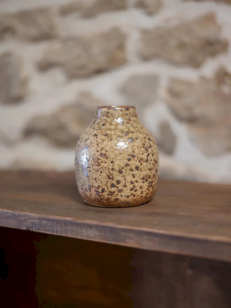 Discover our vintage stoneware vase, a unique piece that combines old-world charm and authenticity. Its soft texture and natural hues make it a perfect decorative accessory to enhance your floral arrangements or enrich your interior. Each vase tells a story, thanks to its timeless design and artisanal finishes. Add an elegant retro touch to your decor with this vase in an unmistakable style. Length: 8 cm Width: 8 cm Height: 11.5 cm Diameter: 4.5 cm Condition: Used: Item that has been used. Item showing some superficial signs of wear, fully operational and functioning correctly. It may be a demonstration model or an item returned to the store after a short period of use, including any potential imperfections. Brand: Debongout Type: Thrifted Product Material: Stoneware Style: Contemporary