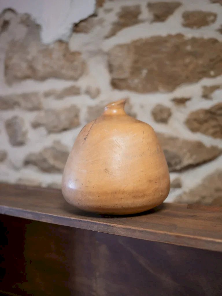 Add a natural touch to your interior with this honey-toned wooden vase. It stands out with its elegant finish that highlights the beauty of the wood. Ideal for holding your dried flowers or as a decorative object, this vase seamlessly integrates into all styles of decor. Give your space a warm and authentic note with this beautiful accessory. Height: 25.5 cm Diameter: 5/23 cm Condition: Used: Item has been used. Item shows some signs of superficial wear... Used: Item has been used. Item shows some signs of superficial wear, fully operational and working correctly. It may be a display model or a returned item after a short period of use. Possible imperfections. Brand: Debongout Type: Thrifted product Material: Wood Style: Contemporary