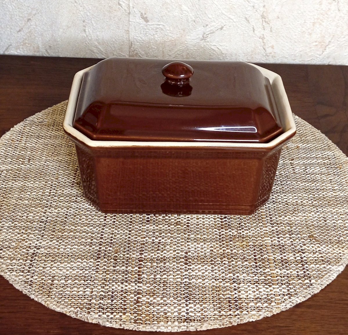 Emile Henry stoneware terrine from the 1980s, made in France and in excellent condition. This model in glossy brown is an iconic piece of the brand, highly sought after. Its glossy glazing and timeless design make it both a useful and decorative object.