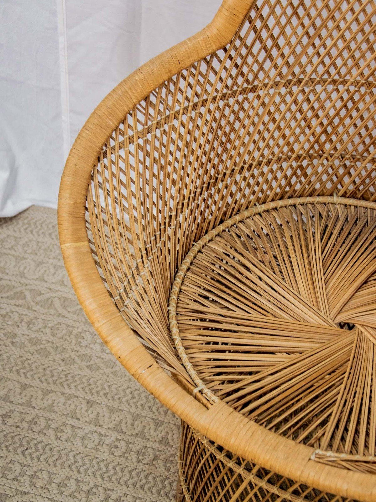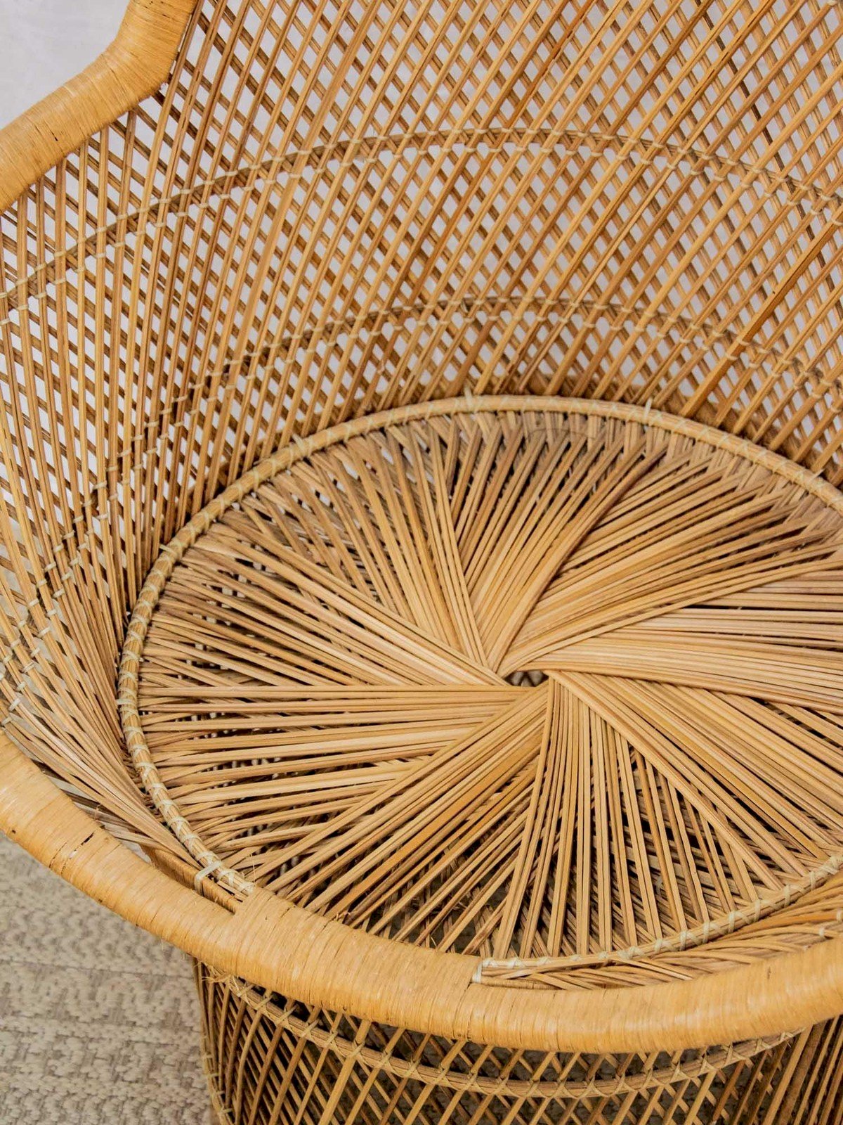 Discover the Emmanuel armchair in light wicker, a perfect choice to bring a touch of lightness and elegance to your interior. Its thinner backrest and round, wide legs give it a delicate design while ensuring excellent stability. This armchair combines comfort and aesthetics, ideal for your moments of relaxation or to enhance your living spaces. Treat yourself to a piece of nature at the heart of your home with this refined and warm furniture. Length: 68 cm Width: 48 cm Seat diameter: 44 cm Height: 110 cm Seat height: 42 cm Condition: Used: Item that has been used. Item showing some superficial signs of wear, fully operational and functioning correctly. It may be a demonstration model or an item returned to the store after a short period of use, with possible imperfections. Color: Multicolor Height: Wicker Width: Armchairs and lounge chairs Brand: Debongout Type: Thrifted product Material: Wicker Style: Contemporary