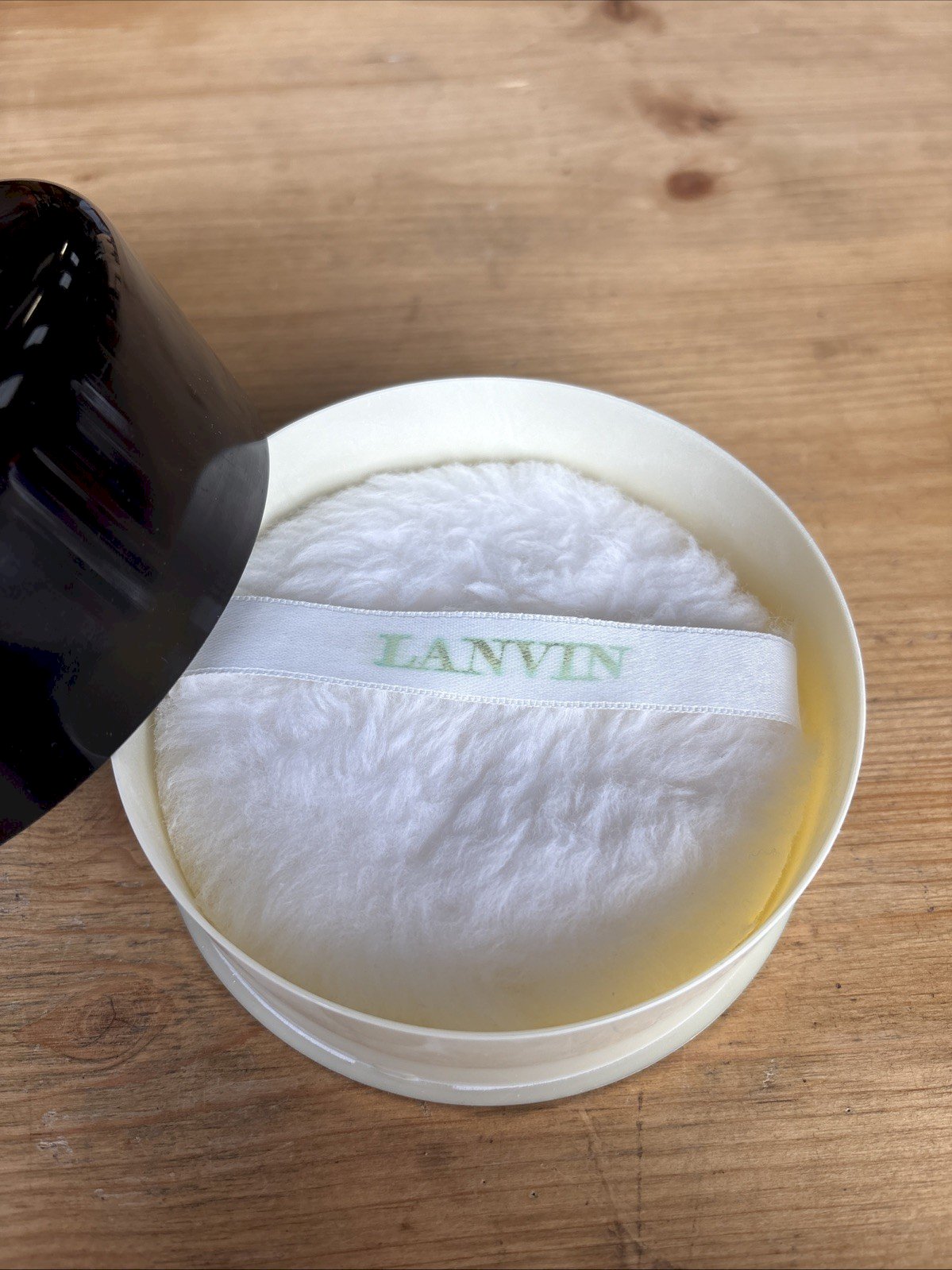 Pretty empty round box of scented body powder "Arpège" by the perfumer Lanvin (Lanvin Paris). • Brand: Lanvin Paris. • Original product: Scented body powder "Arpège". • Indicated capacity: 100 g (approximately) on the inner label. • Box dimensions: diameter ~11 cm, height ~5 cm approximately. • Condition: The box is empty (the powder has already been used or removed). • Included: A small decorative flower (which can be worn as a brooch) found inside the box. • Visual details: Black case (or black background) with golden/silver Lanvin logo on the lid. The interior is cream white, with the glitter/puffs (or sieve) visible. • Some signs of use or vintage wear to note (see photos) – please consult the pictures for the exact condition. • Recommended use: Beautiful vintage collectible piece for fans of old cosmetics or curiosity items, or for decorative elements. Shipping & packaging: The box will be carefully packaged (with appropriate padding) to avoid any shock during transport. Sent from France. Shipping costs to be expected (to be calculated according to the chosen method, recommended tracking advised). Important information: • This is only the empty container (+ decorative flower): no scented powder is included. • Buyers are kindly requested to carefully review the photos and ask any questions before purchase. • Sale is made as is. Returns not accepted except in cases of non-compliance. Condition: Used: Item has been used. Check the seller's description for more details ...Used: Item has been used. Any imperfections. Characteristic: Empty Number of pieces: 1 Era: 1970s Brand: Lanvin Country of origin: France Gender: Women Capacity (ml): 100