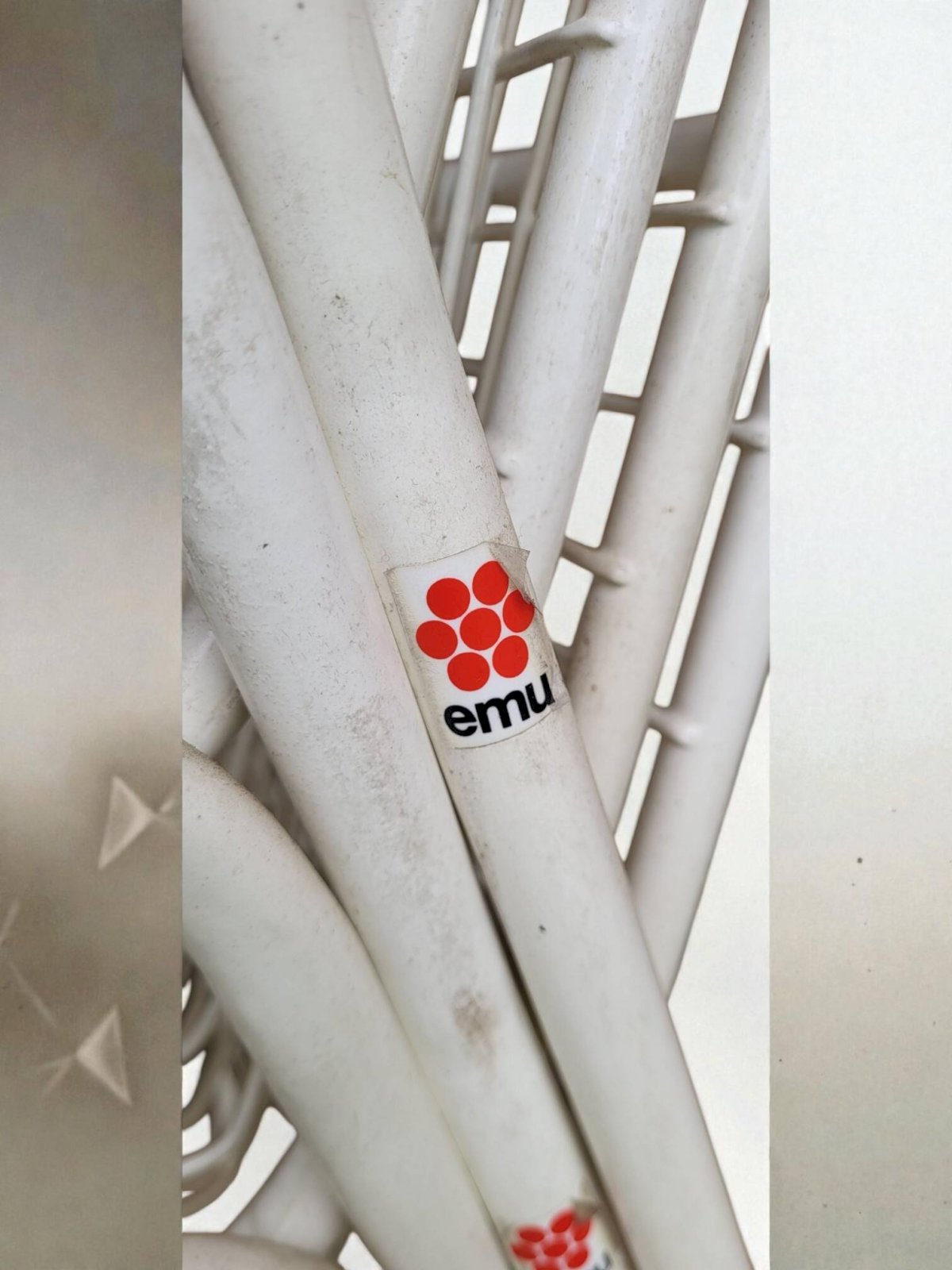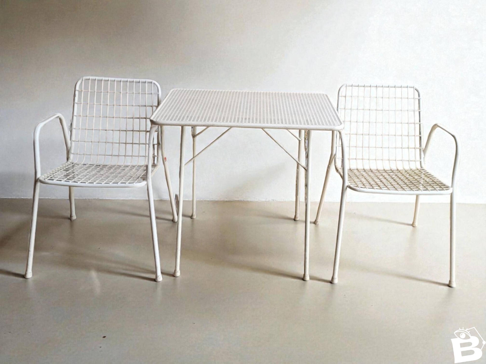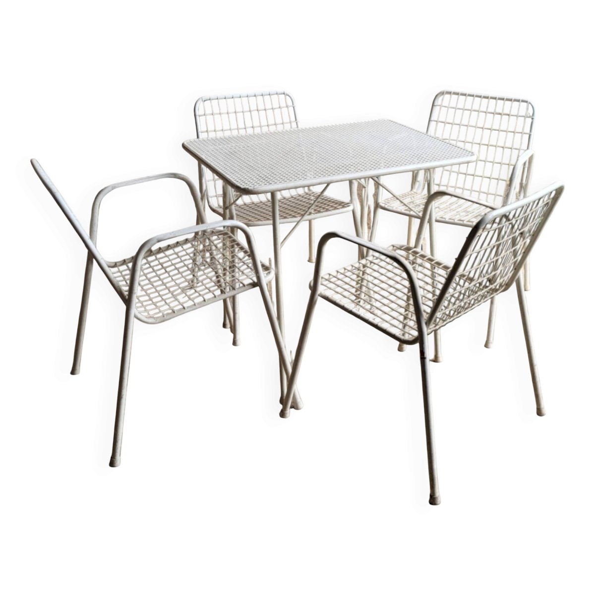 EMU outdoor furniture set including 4 armchairs and 1 table. This is the RIO model, emblematic of the brand. The model was launched in 1968.