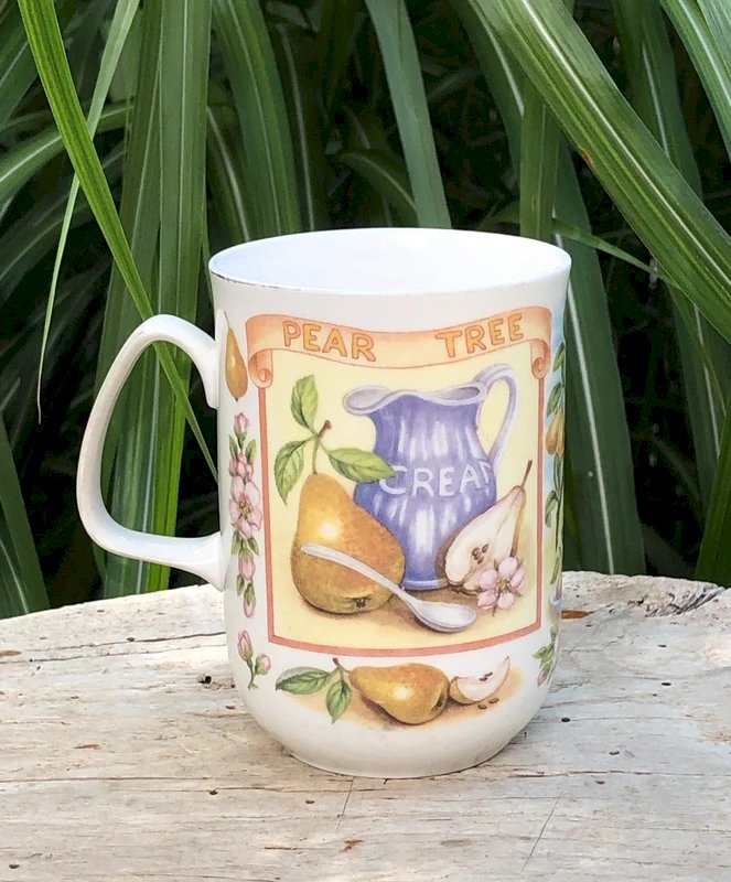Vintage porcelain cup Rose of England with strawberry and raspberry patterns.