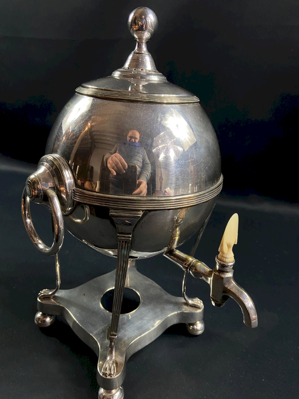 Samovar, hot water fountain in English silver-plated metal from the late 19th century. Dimensions: Height 33.6 x 23 x 20.5 cm. Weight: 1865 grams. I note the presence of fine usual scratches. Ultra-secure shipping worldwide - Order pick-up available by appointment at 7 rue Notre-Dame 18000 Bourges. - Possibility of grouping within the same package: please contact me in advance so that I can calculate your optimized shipping costs. Authenticity: Original. Type: Tableware, Kitchen. Origin: United Kingdom. Country of origin: United Kingdom. Subtype: Samovar. Material: Silver-plated metal.