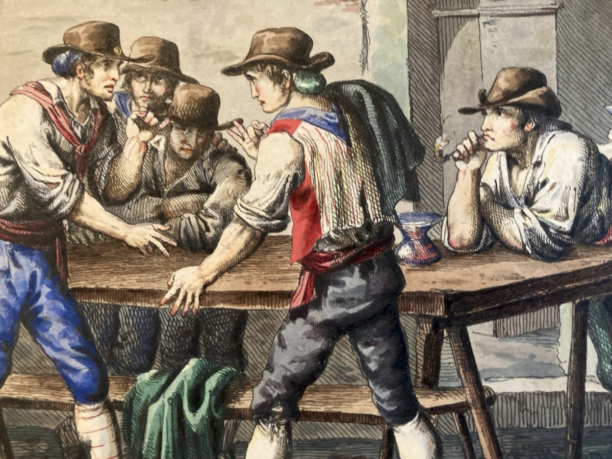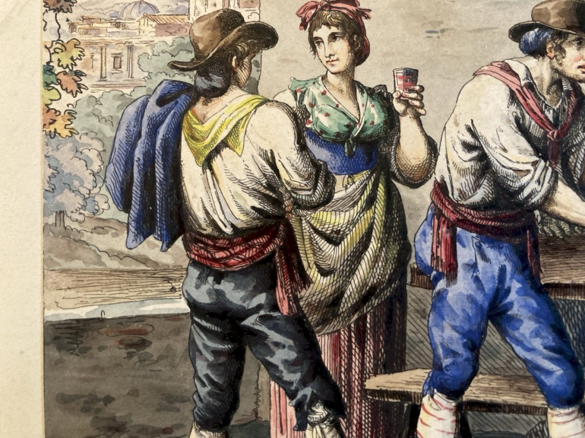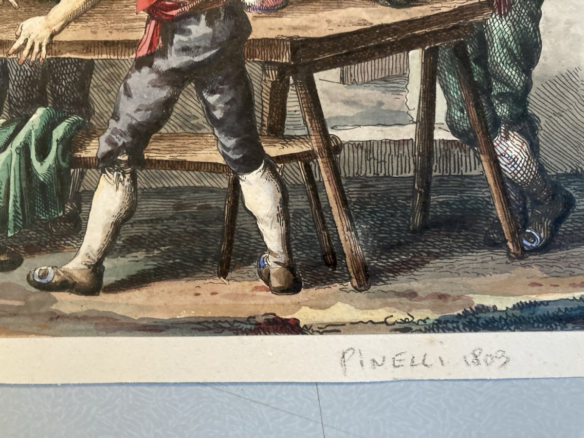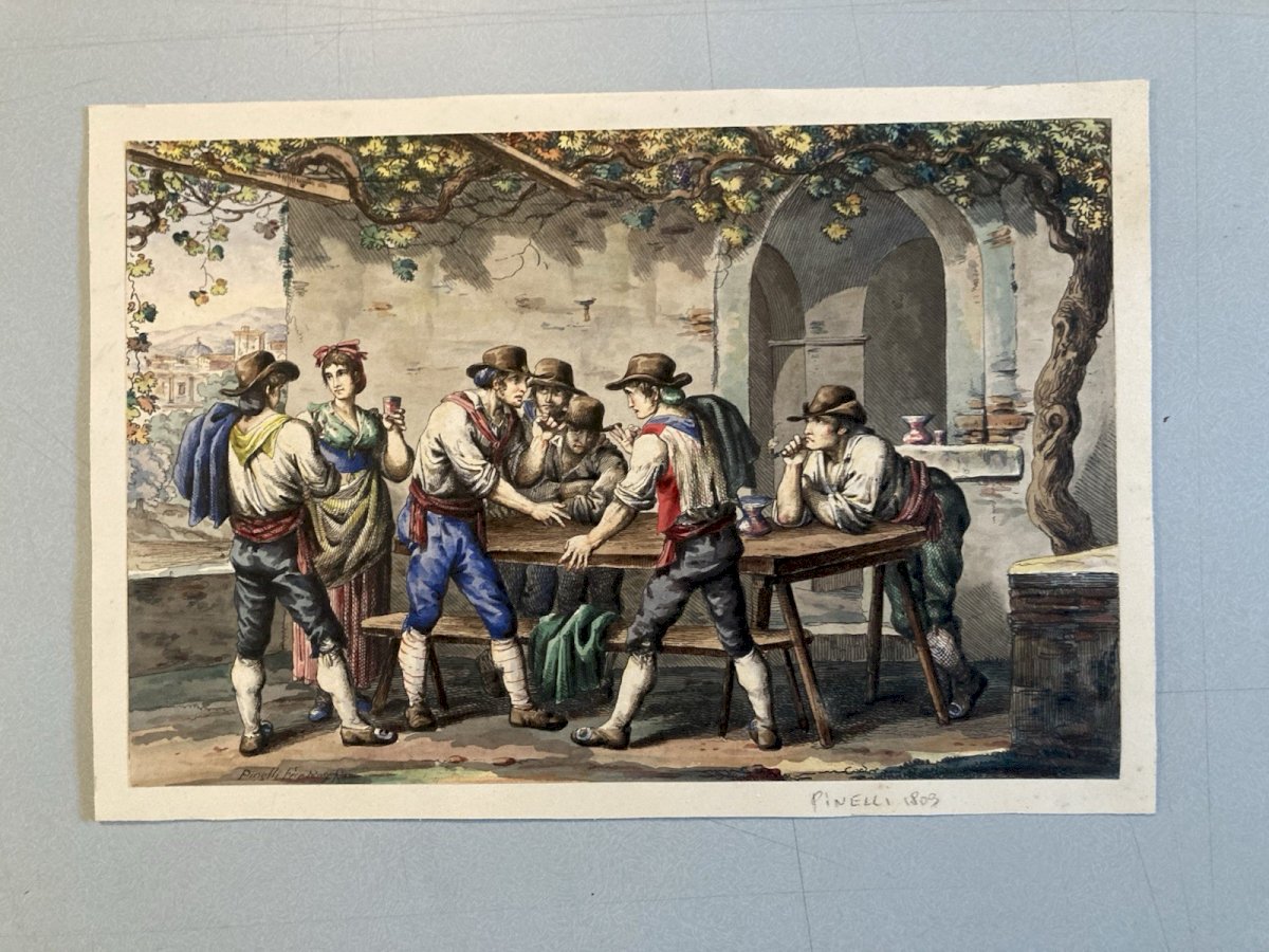Engraving Etching art Bartolomeo Pinelli Italy Enhanced Gouache Antique 1803 19th century