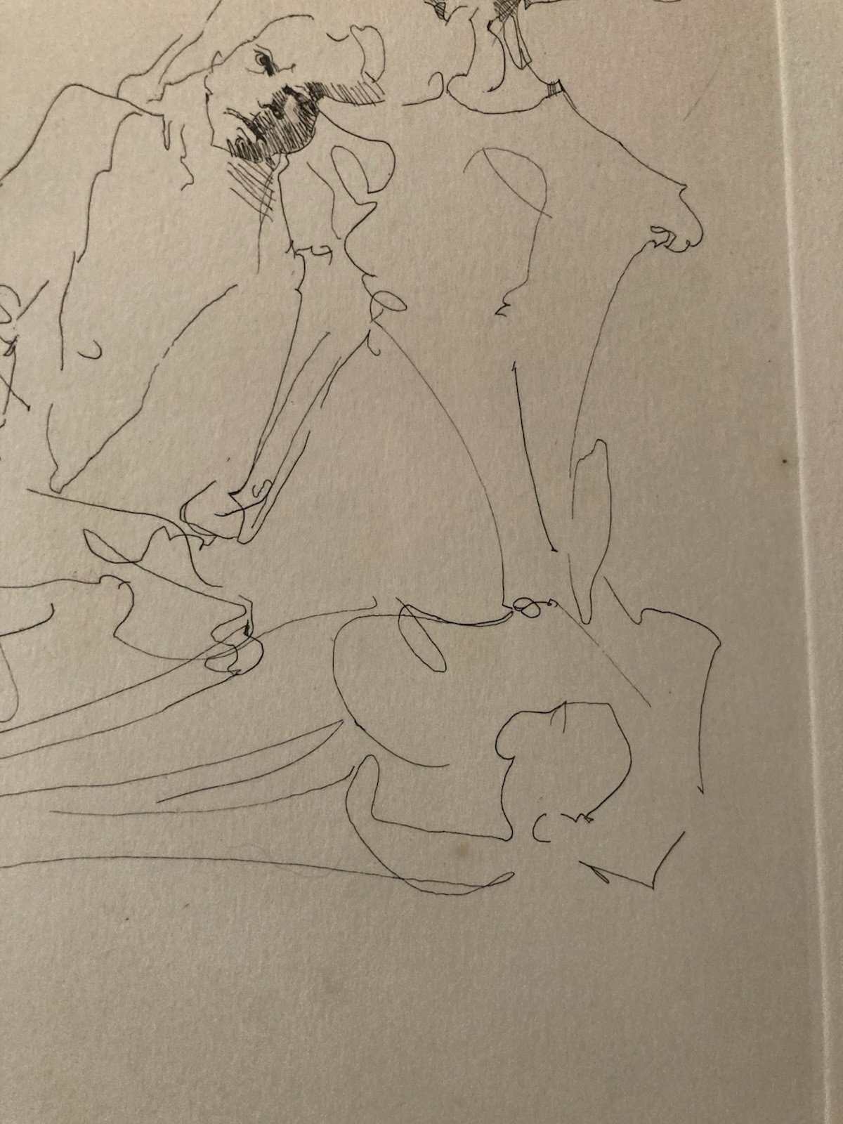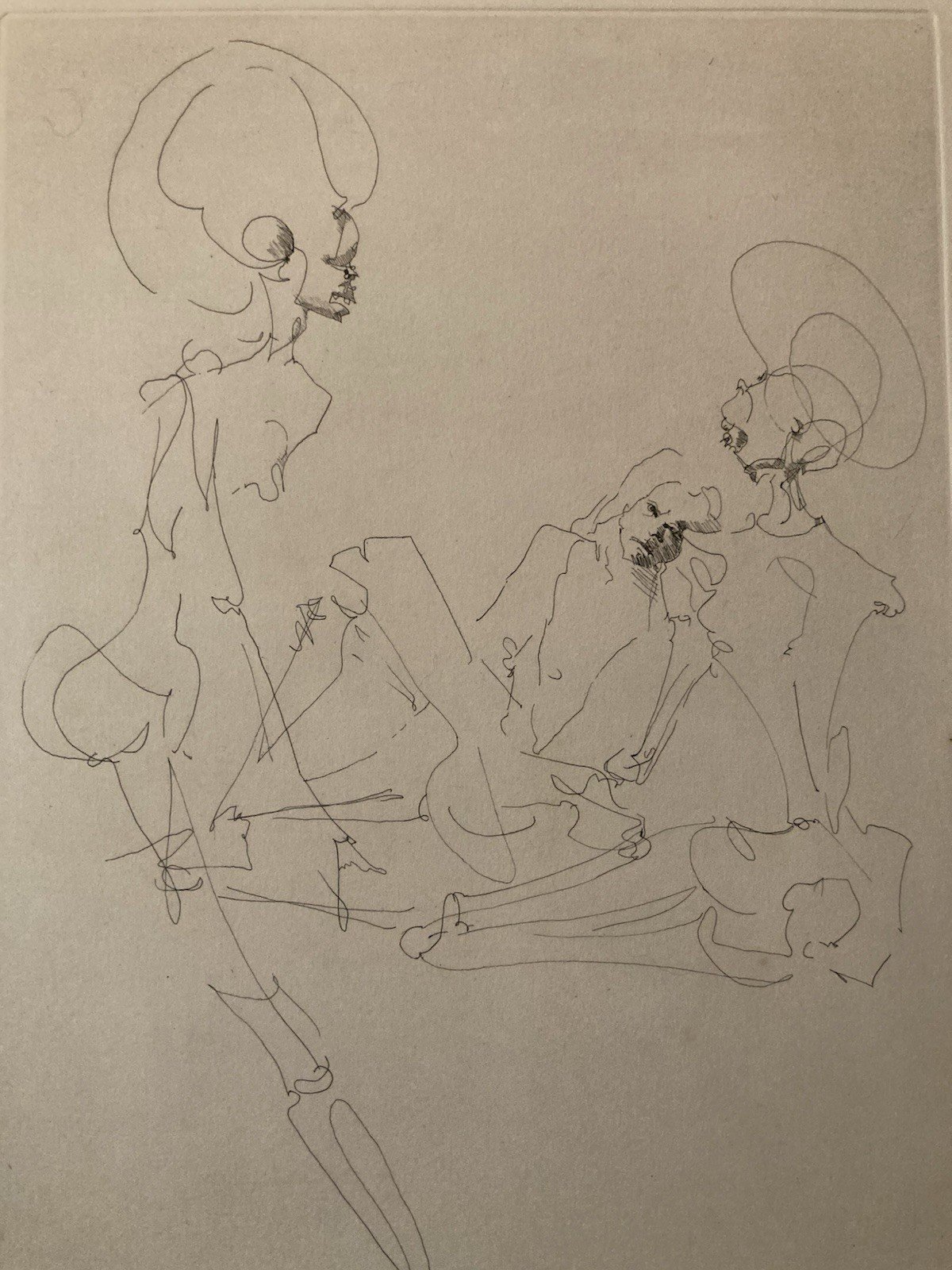 Engraving, unframed, to note a few small stains, see Photo Biography – Leonor Fini (1907–1996) Leonor Fini is a major 20th-century artist, born in Buenos Aires in 1907 and raised in Trieste, before permanently settling in Paris in the 1930s. Self-taught, she quickly established herself in European intellectual and artistic circles and drew closer to the surrealist movement, while maintaining total independence from its dogmas. Painter, draftsman, engraver, and illustrator, Leonor Fini develops a unique, dreamlike, and symbolic universe, populated by androgynous figures, hybrid creatures, skeletons, and enigmatic scenes. Her work explores the themes of dreams, metamorphosis, feminine power, and death, with great formal freedom. She also collaborates as an illustrator for numerous literary works (Baudelaire, Poe, Shakespeare, Sade), as well as for theater, opera, and haute couture. Her works are now included in the greatest international public and museum collections. ⸻ Description of the work Original engraving by Leonor Fini representing an allegorical scene composed of stylized skeletal figures, rendered with a nervous, linear, and extremely expressive drawing style. The composition, deliberately stripped down, highlights the movement of bodies and the psychological tension between the characters, characteristics of the artist's graphic vocabulary. The fine and incisive line, combined with an almost theatrical staging, fully places this work within Leonor Fini's symbolic and surreal universe, where death and the imaginary engage in a dialogue of elegance and irony. ⸻ Origin of the engraving This print is an original engraving (etching) made by Leonor Fini, drawn from an illustrated work published in the 20th century, as part of her significant activity as a literary illustrator. The work was printed on vellum paper, with wide margins, in accordance with the practices of art publishing of the time. ? Engraving not later than, originating from an old edition, and not from a modern reproduction. Recommended products Provided by Recommended products Provided by Beautiful Engraving Portrait Couple Leonor Fini Expressionism Expressionist 1970 View product Very Beautiful Engraving Portrait Woman Leonor Fini Expressionism Monogram 1970 View product Gouache Painting Paper Man Expressionism 1970 Expressionist Portrait Art View product Oil Painting On Panel 1970 Portrait Woman Expressionist Expressionism View product Painting Portrait Man Gouache Paper Expressionist 1950 Expressionism Art View product Country of origin: France Style: 1970 Genre: Expressionism Features: On Paper Theme: Character