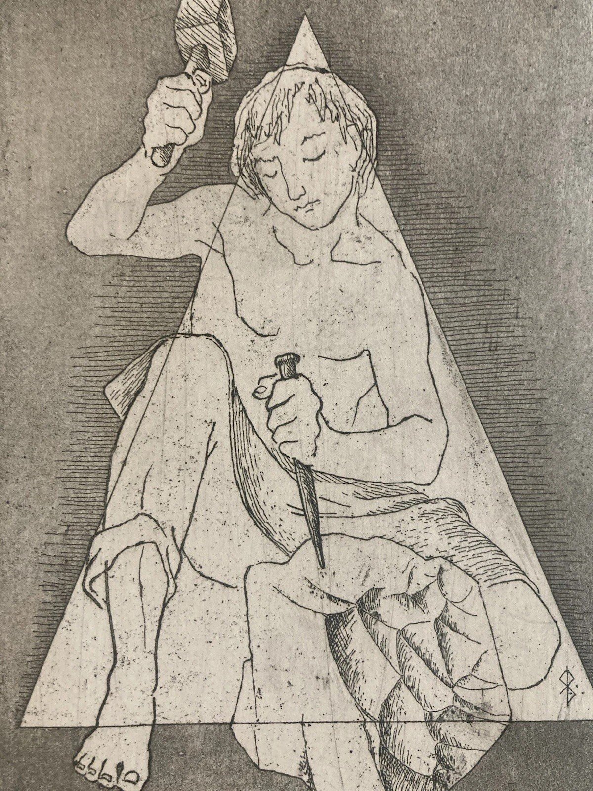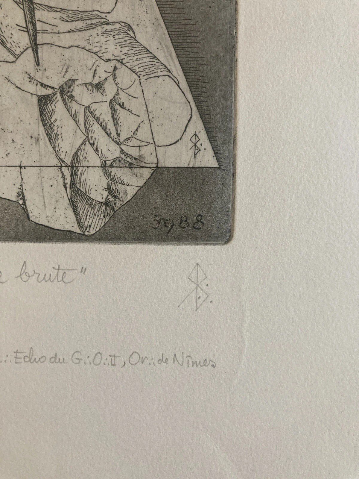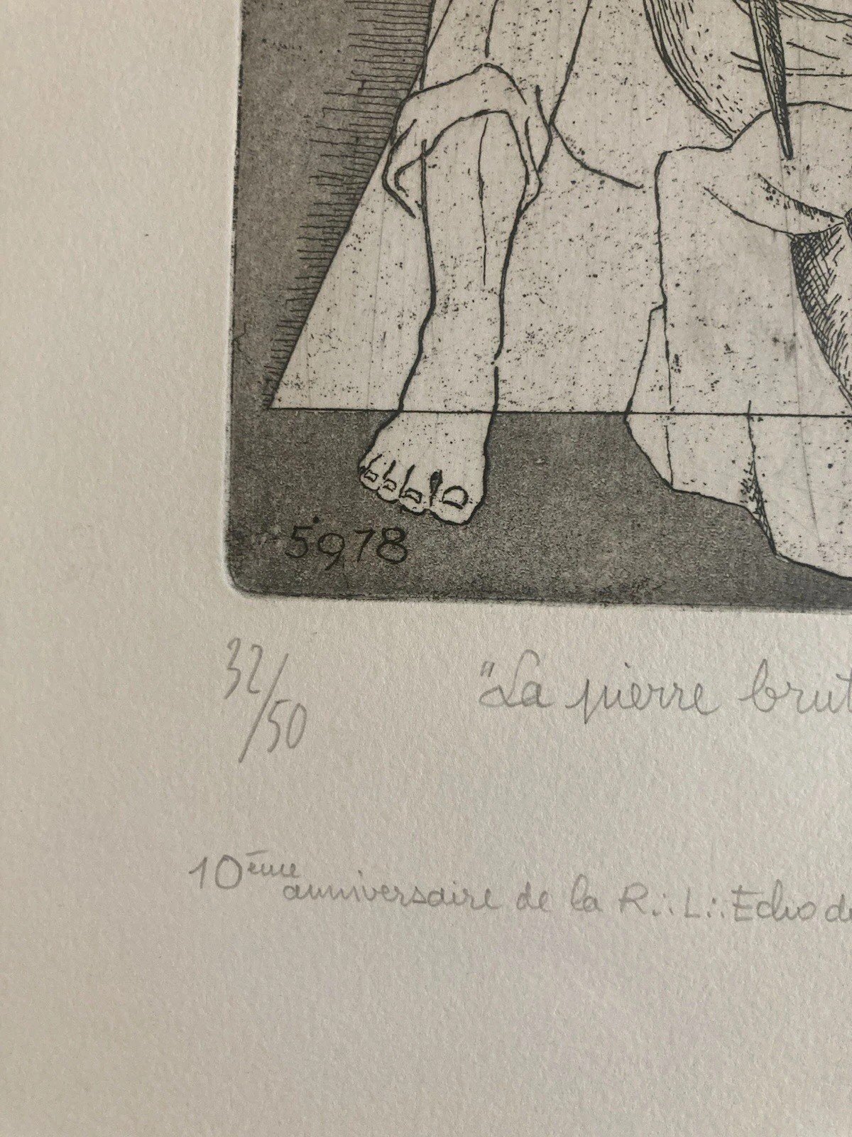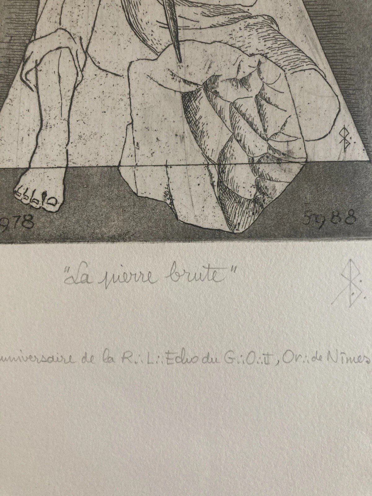 Engraving Signed A Identify 1980 20th Art Rough Stone Mason 1980