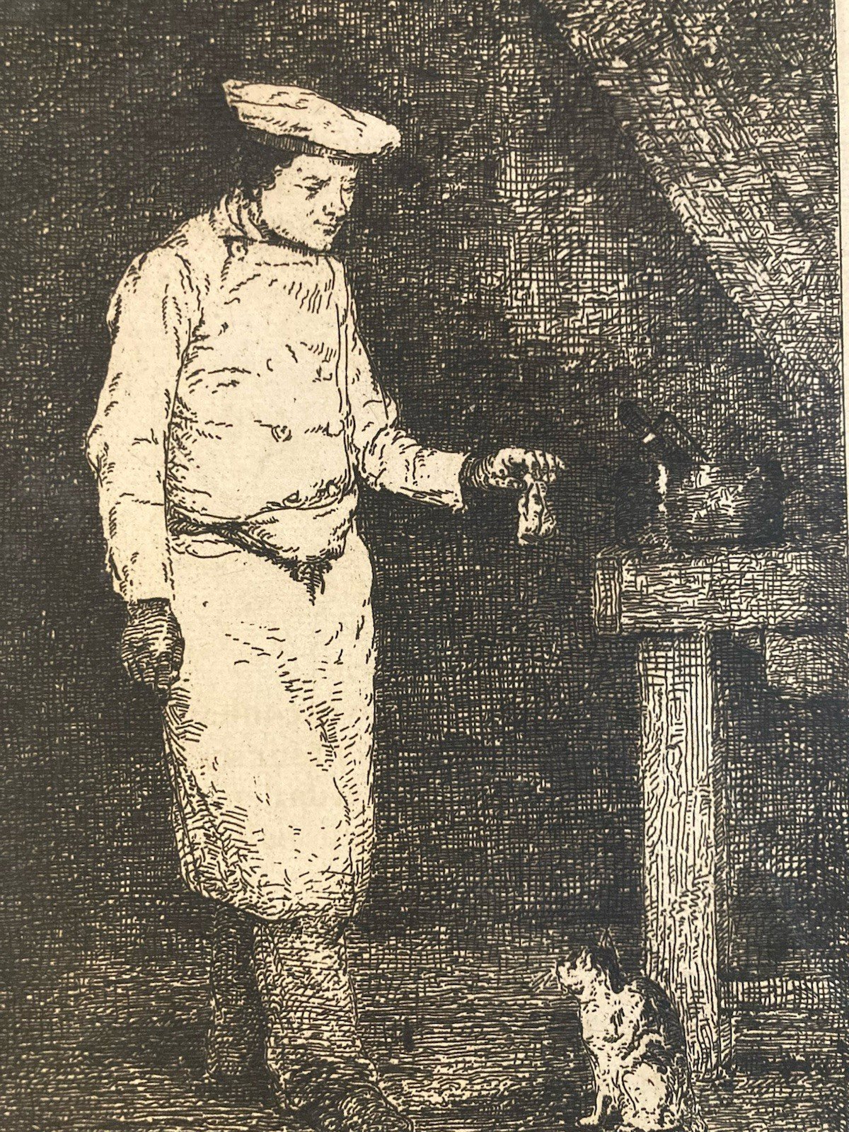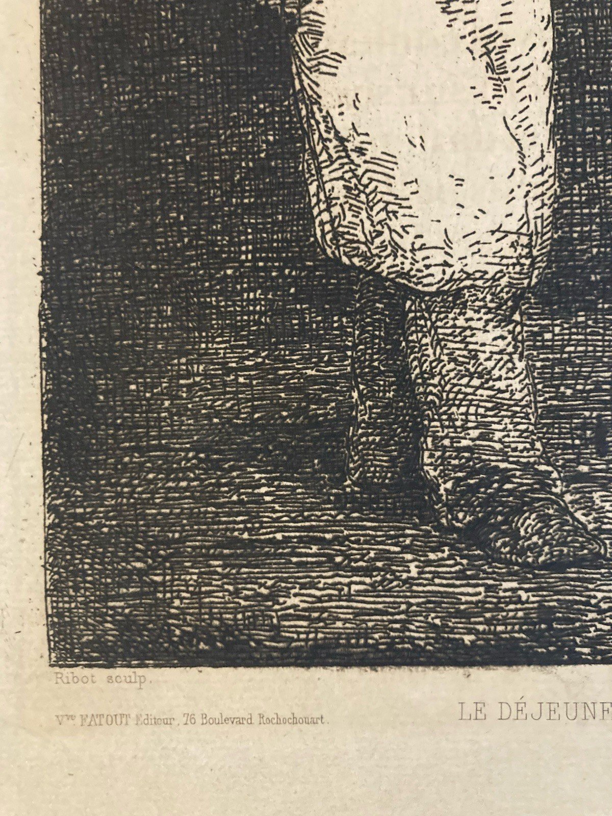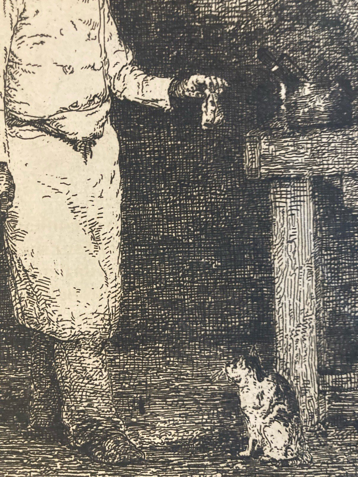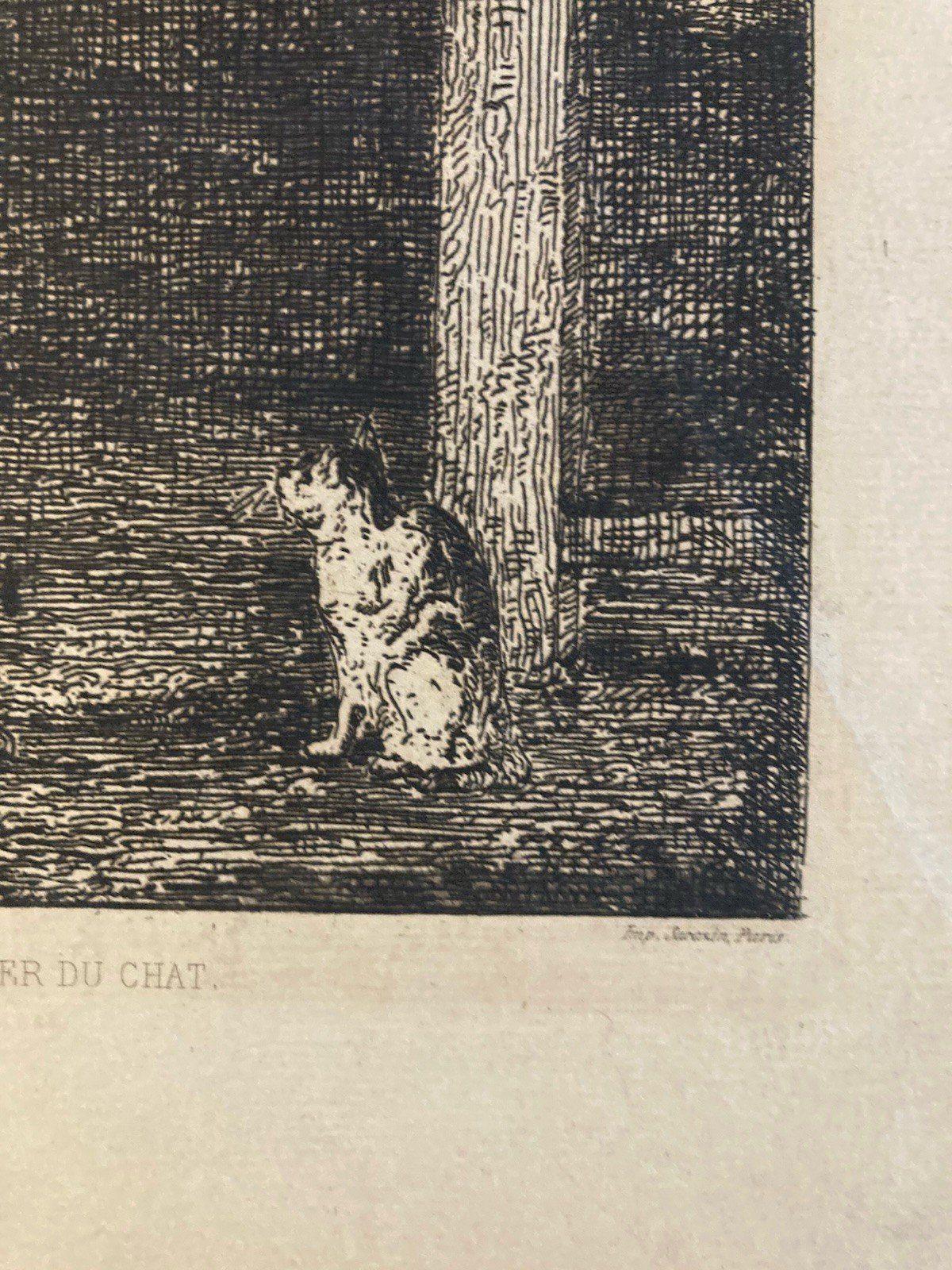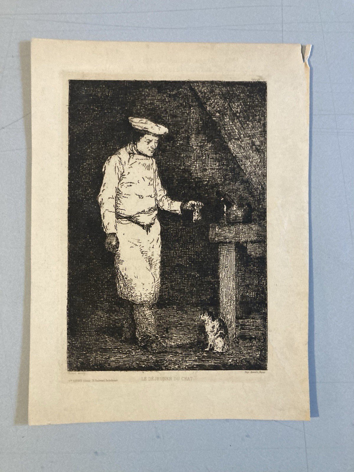 Engraving Theodule Ribot The Cat's Lunch Original Print Antique 1870 Art