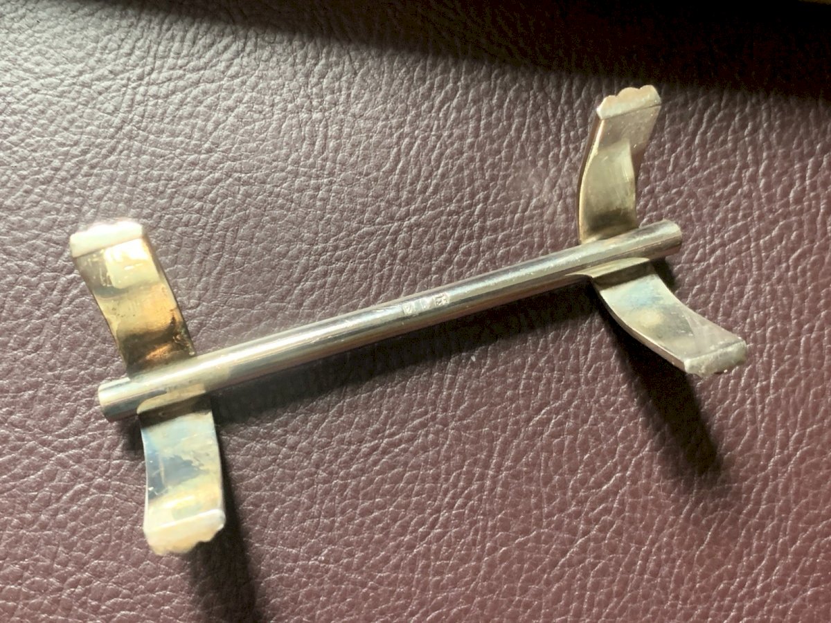 Erciers knife holder set, silver-plated metal, Art Deco modernist.