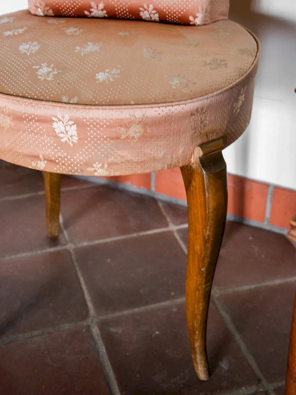 Discover this charming little armchair with curved wooden legs, combining elegance and comfort. Its light pink floral-patterned fabric, slightly faded on one side, gives it a unique and romantic character. Perfect for enhancing your interior, making it a practical and decorative accessory. Length: 43 cm Height: 60 cm Seat height: 44 cm Condition: Used item showing some signs of superficial wear, fully operational and functioning correctly. It may be a demonstration model or an item returned to the store after a short period of use. Any potential imperfections. Color: Multicolor Height: Wood, Fabric Width: Armchairs and lounges Brand: Debongout Type: Vintage product Material: Wood, Fabric Style: Country