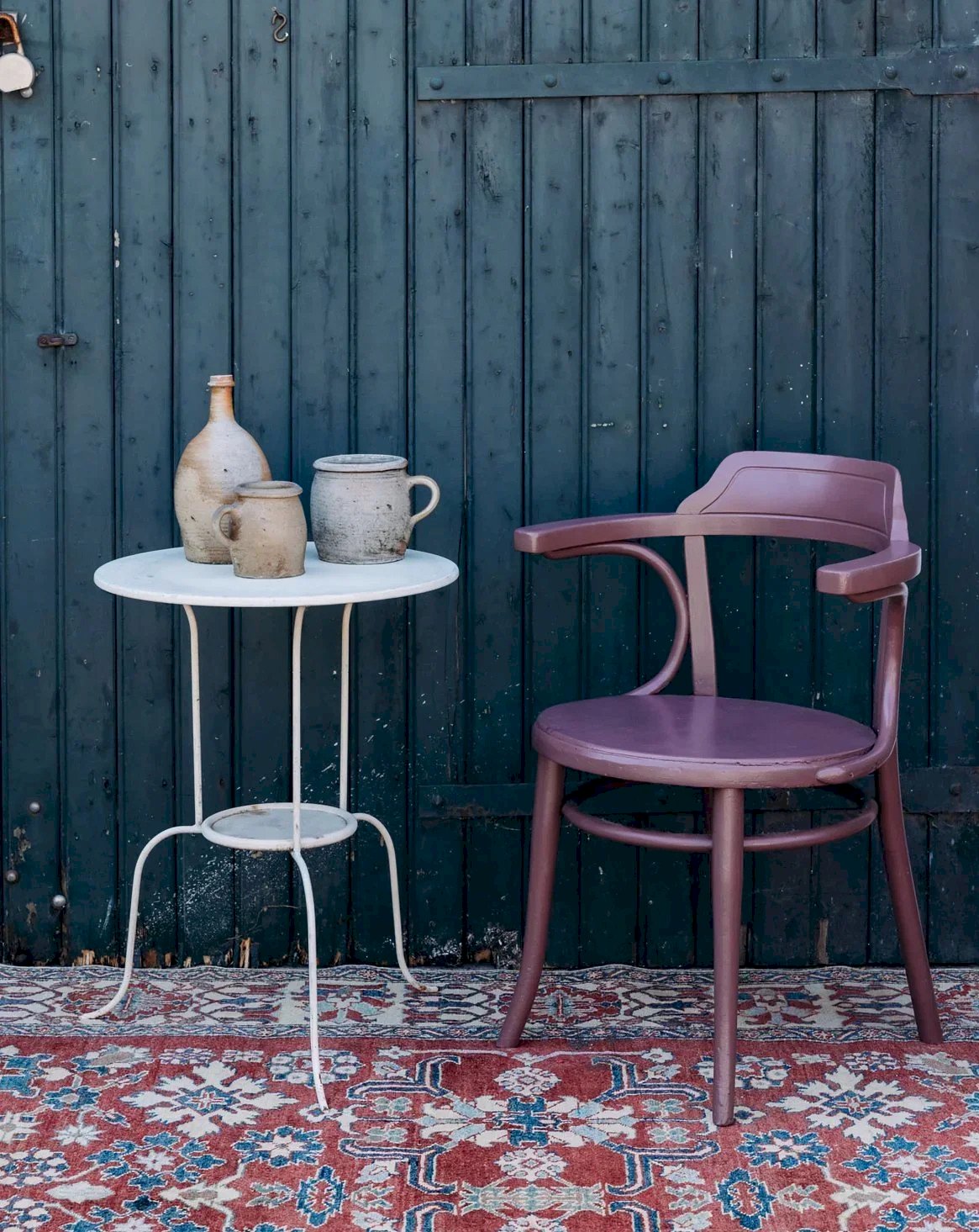 Discover this wooden chair with an original look, repainted in a lovely purple that gives it character. Its round seat and curved legs offer an elegant and gentle silhouette. The marks of time add a touch of authenticity to the whole. Ideal for bringing a vintage and colorful note to your interior. A chair that is both decorative and welcoming. Length (with armrests): 52 cm Height: 82 cm Seat height: 47 cm Diameter: 47 cm Condition: Used: Item has been used. Item shows some superficial signs of wear, ...Used: Item has been used. Item shows some superficial signs of wear, fully operational and functioning properly. It may be a demonstration model or an item returned to the store after a short period of use. any potential imperfections. Color: Multicolor Height: Wood Width: Armchairs and chaise lounges Brand: Debongout Type: Sourced product Material: Wood Style: Country