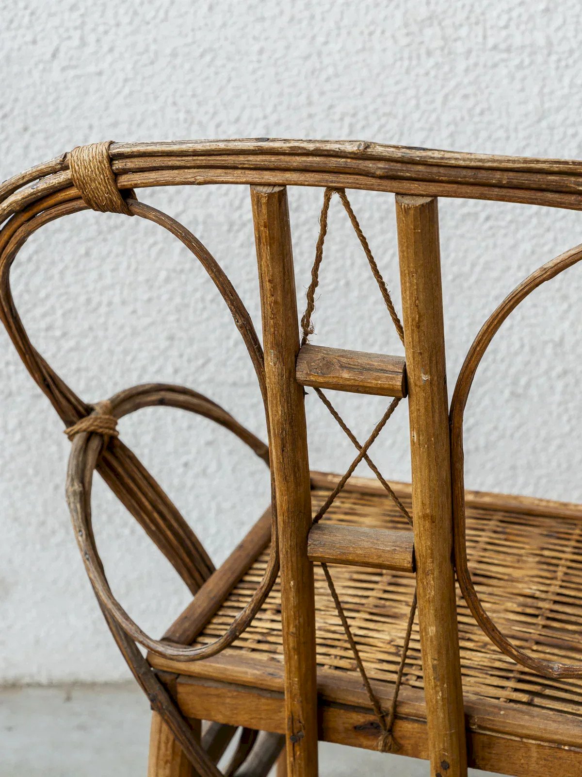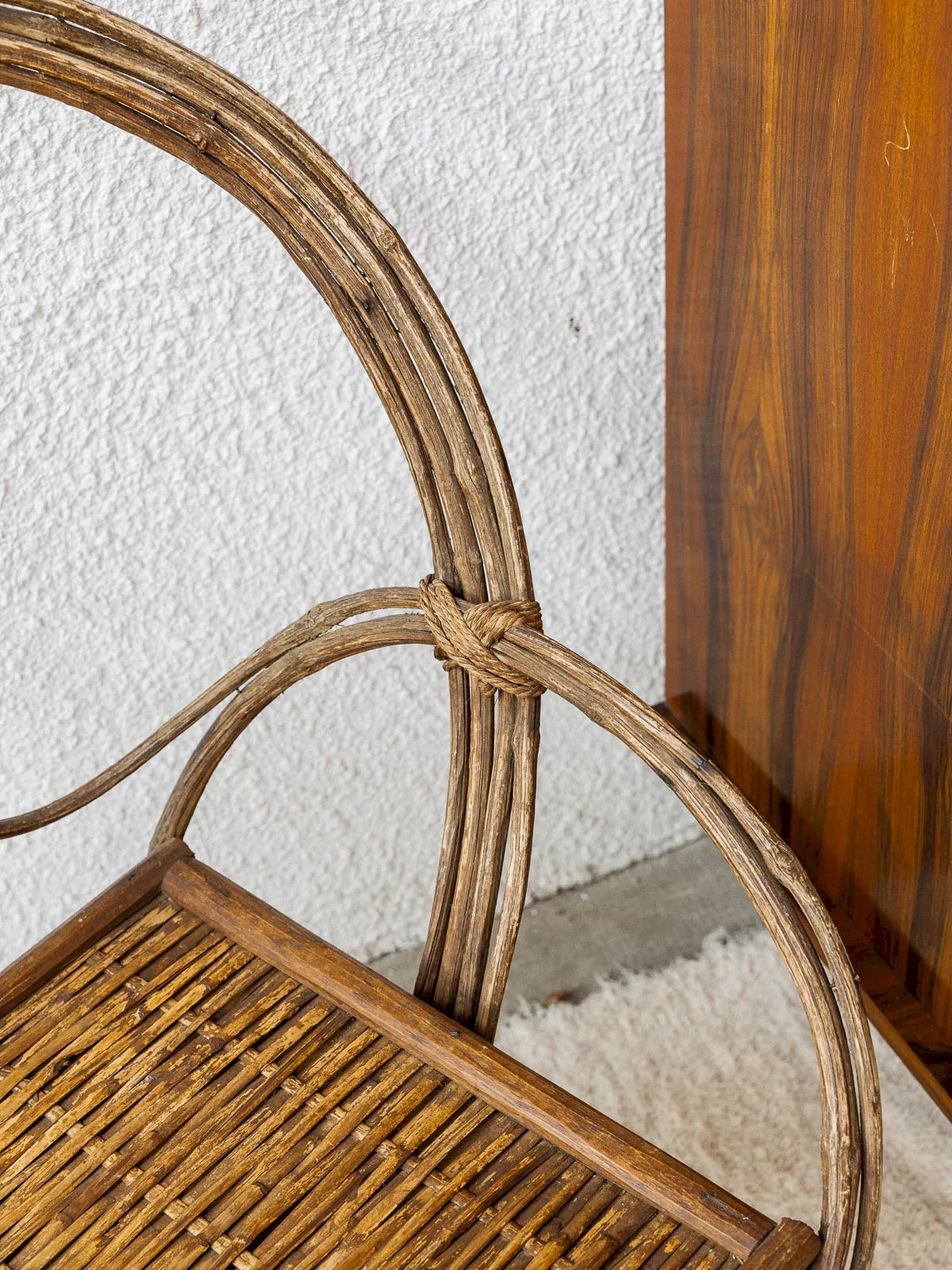 Add a vintage touch to your interior with this 1950s wooden armchair. Its brutalist design features bold lines, while the rope finish adds a unique and warm texture. Ideal for a living room or an office, this armchair combines comfort and aesthetics, making it a must-have for retro decor enthusiasts. A true testament to the craftsmanship of the era, it will charm with its timeless appeal. Width: 76.5 cm Height: 90 cm Seat Height: 41.5 cm Seat Depth: 40 cm Condition: Used item. Item shows some superficial signs of wear,... Used item. Item shows some superficial signs of wear, fully operational and functioning correctly. It may be a display model or an item returned to the store after a short period of use, with possible imperfections. Color: Multicolor Height: Wood, Rope Width: Armchairs and Lounge Chairs Brand: Debongout Type: Vintage Product Material: Wood, Rope Style: Country