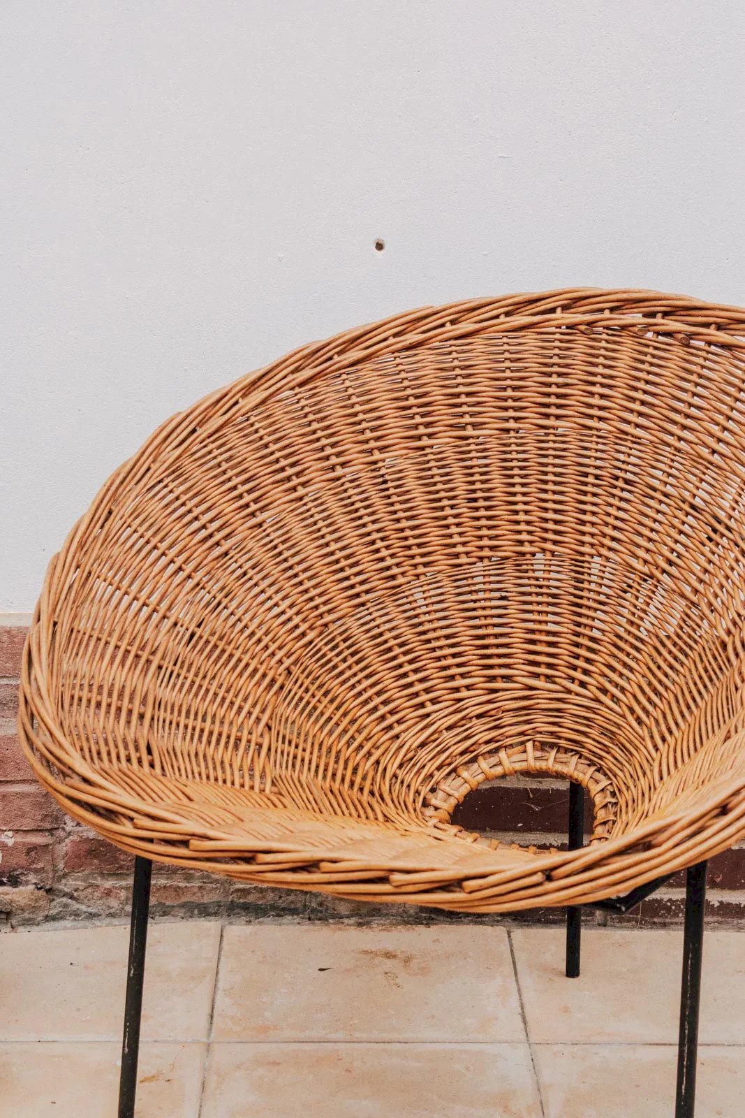 Discover this rattan armchair by Robert Mango, emblematic of Italian design from the 1950s. Its black metal frame elegantly highlights the curves of the natural rattan. A light and sculptural seat, perfect for a vintage or contemporary interior. Some traces of patina on the base testify to its authenticity. A rare piece with timeless charm. Length: 84 cm Height: 73 cm Seat height: 45 cm Depth: 78 cm Condition: Used: An item that has been used. Item showing some superficial wear marks, fully operational and functioning correctly. It may be a demonstration model or an item returned to the store after a short period of use. Possible imperfections. Color: Multicolor Height: Rattan, Metal Width: Armchairs and lounge chairs Brand: Debongout Type: Curated product Material: Rattan, Metal Style: Country