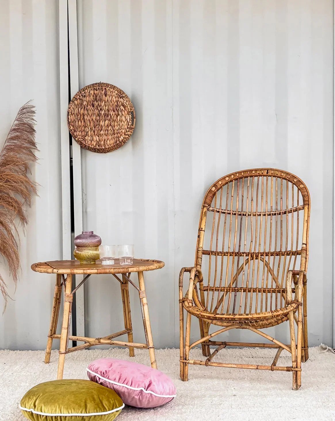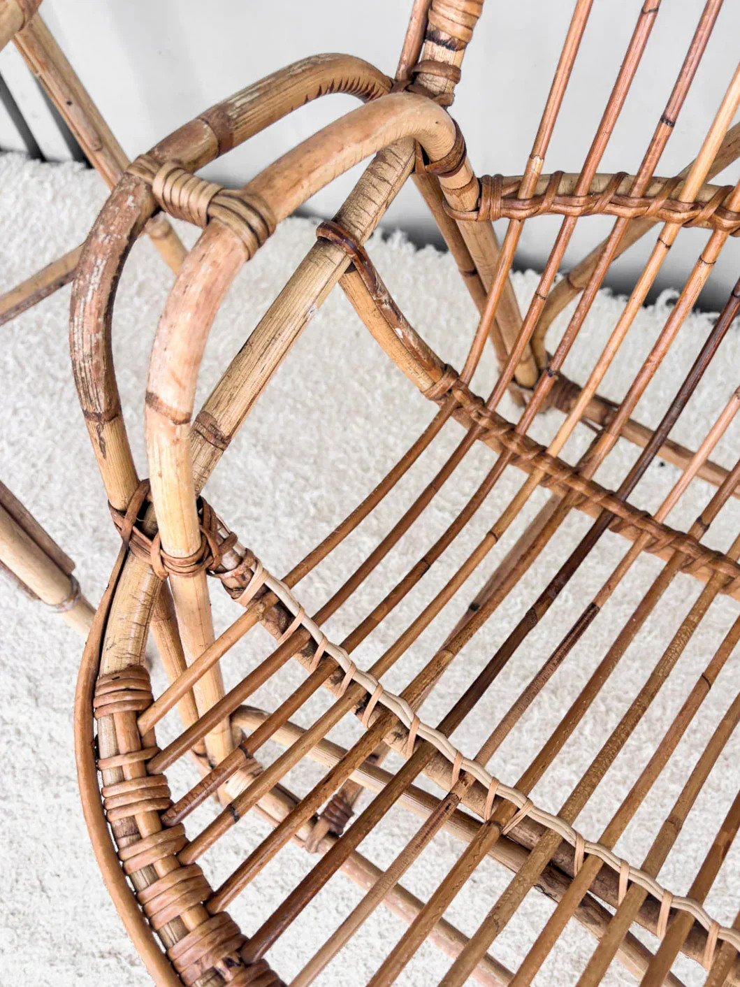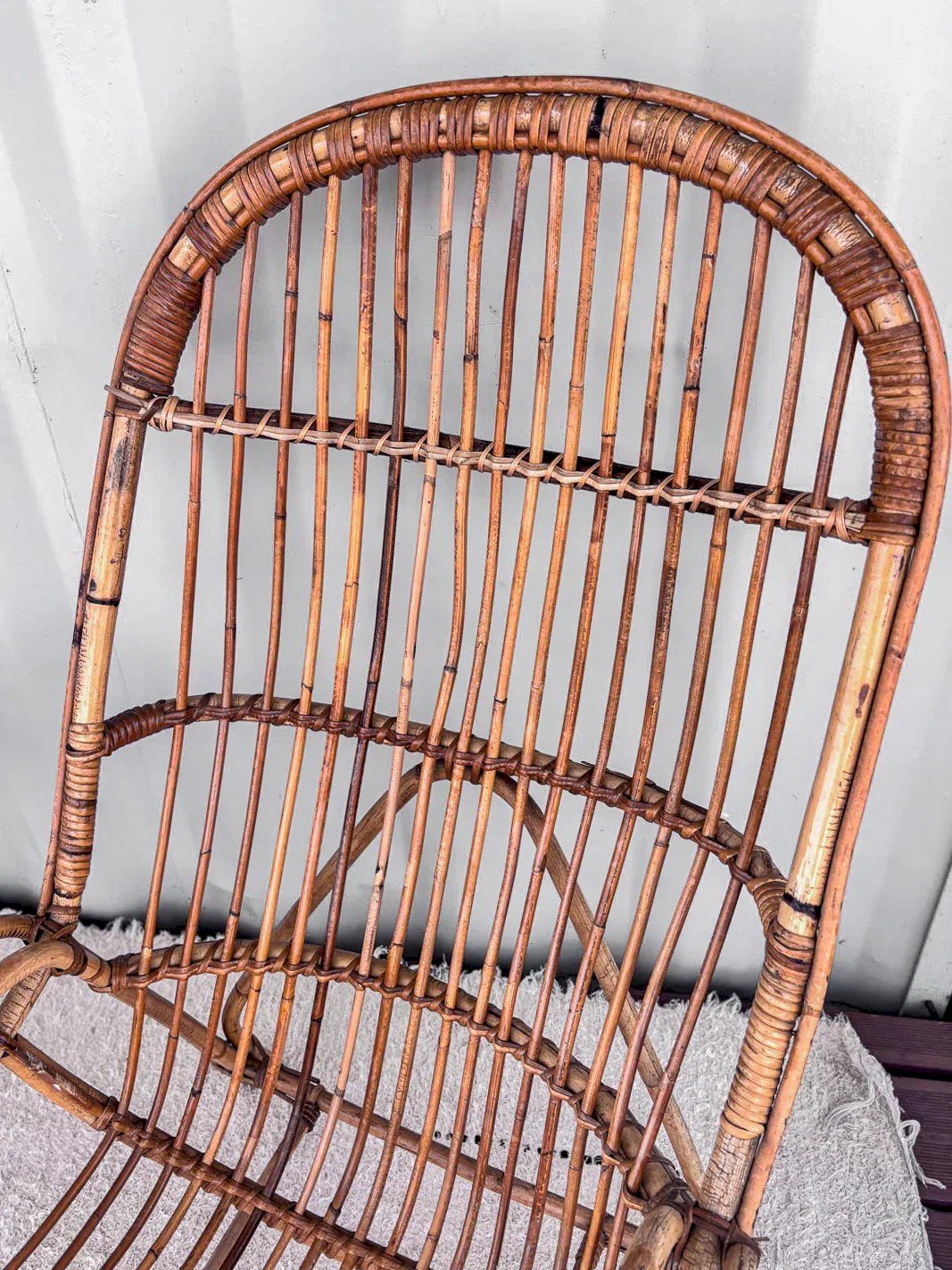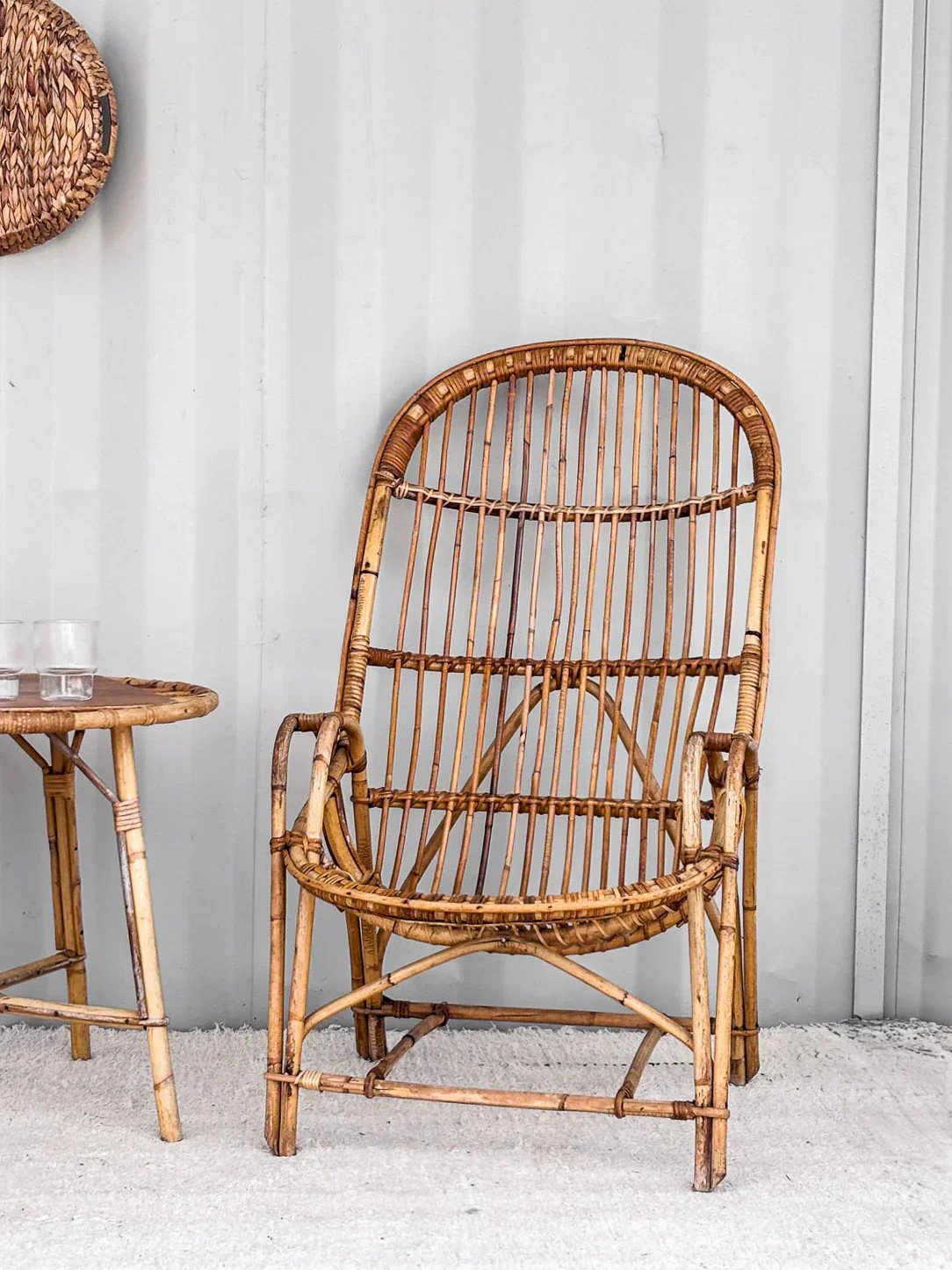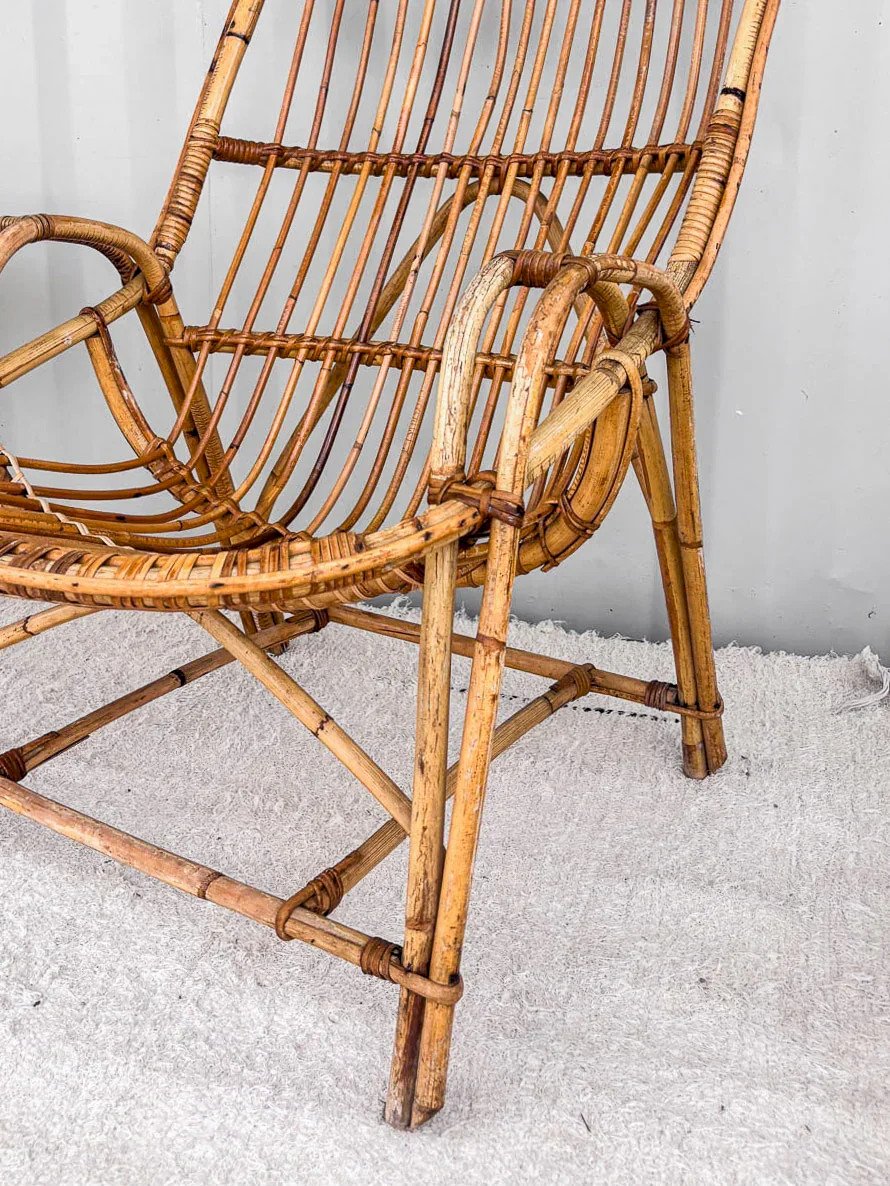 Discover our high-back rattan armchair, a true gem from the 1950s. Its elegant design combines comfort and aesthetics, perfect for adding a vintage touch to your interior. Every curve of this armchair has been carefully crafted to ensure a pleasant seating experience while showcasing traditional craftsmanship. Ideal for a living room or a veranda, it invites relaxation and conviviality. Width: 61 cm Height: 107 cm Seat height: 35 cm Depth: 46 cm Condition: Used: Item has been used. Item shows some superficial signs of wear... Used: Item has been used. Item shows some superficial signs of wear, fully operational and functioning correctly. It may be a demonstration model or an item returned to the store after a short period of use. any possible imperfections. Color: Multicolor Height: Rattan Width: Armchairs and lounge chairs Brand: Debongout Type: Vintage product Material: Rattan Style: Country