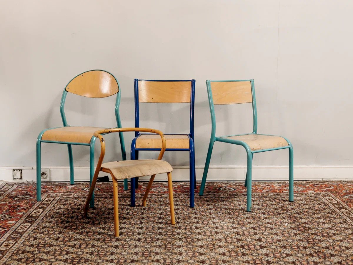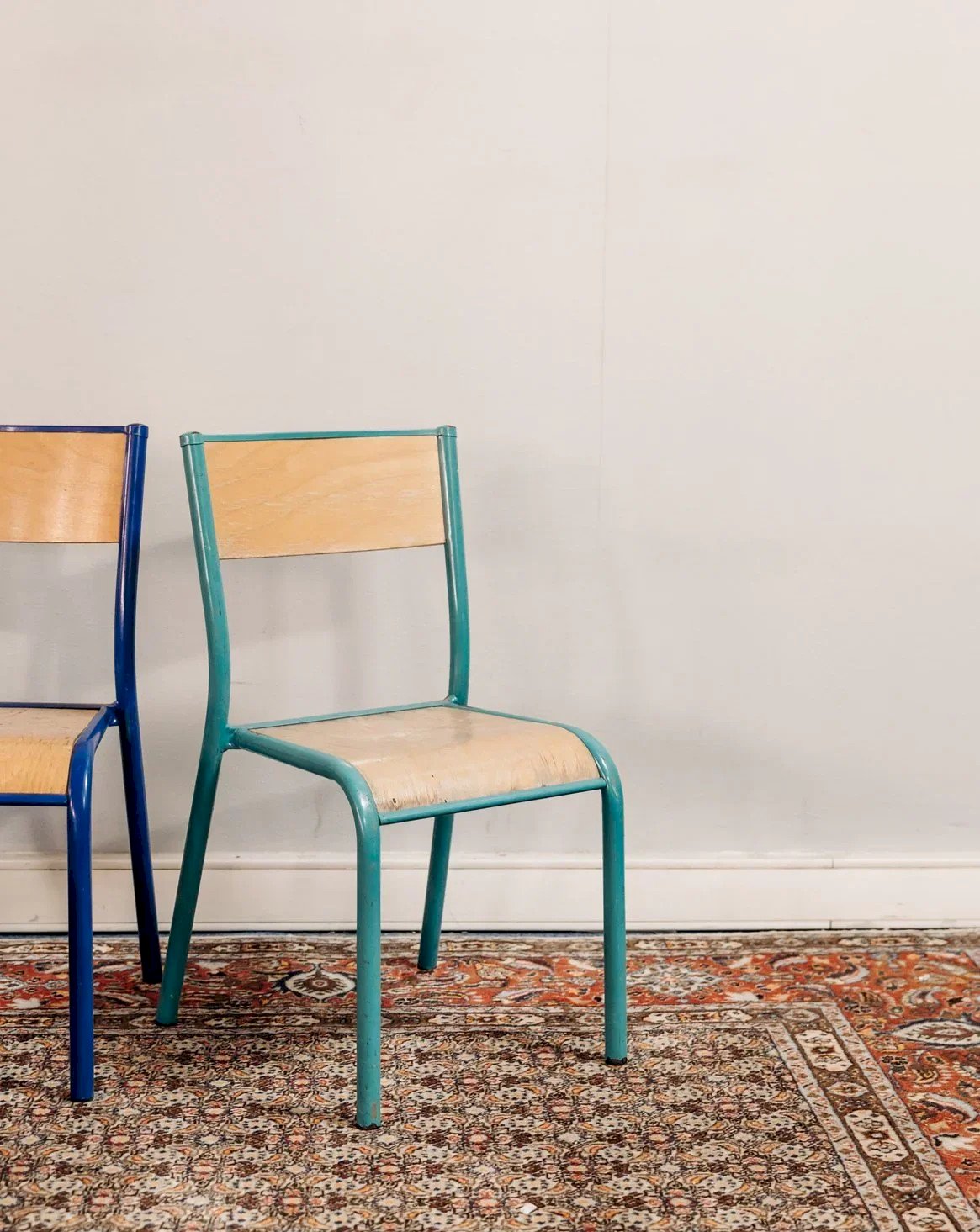 Adopt this light blue metal chair with industrial and delicate charm, enhanced by a warm wooden seat and backrest that provide comfort and character. Its compact proportions and stable structure make it ideal for a kitchen, a coffee corner, or a small terrace, offering practical seating without overcrowding the space. The soft paint and wood patina give it a unique personality, easy to integrate into a contemporary interior or a retro decor. Some signs of use add to its authenticity. Length: 34 cm Width: 32 cm Height: 70 cm Seat height: 40 cm Condition: Used: Item that has been used. Item showing some superficial signs of wear, fully operational and functioning correctly. It may be a display model or an item returned to the store after a short period of use, with possible imperfections. Color: Multicolor Height: Country Style Width: Metal, Wood Length: Chairs Brand: Debongout Type: Vintage product Material: Metal, Wood Style: Country Assembly required: No Assembly level: Fully assembled