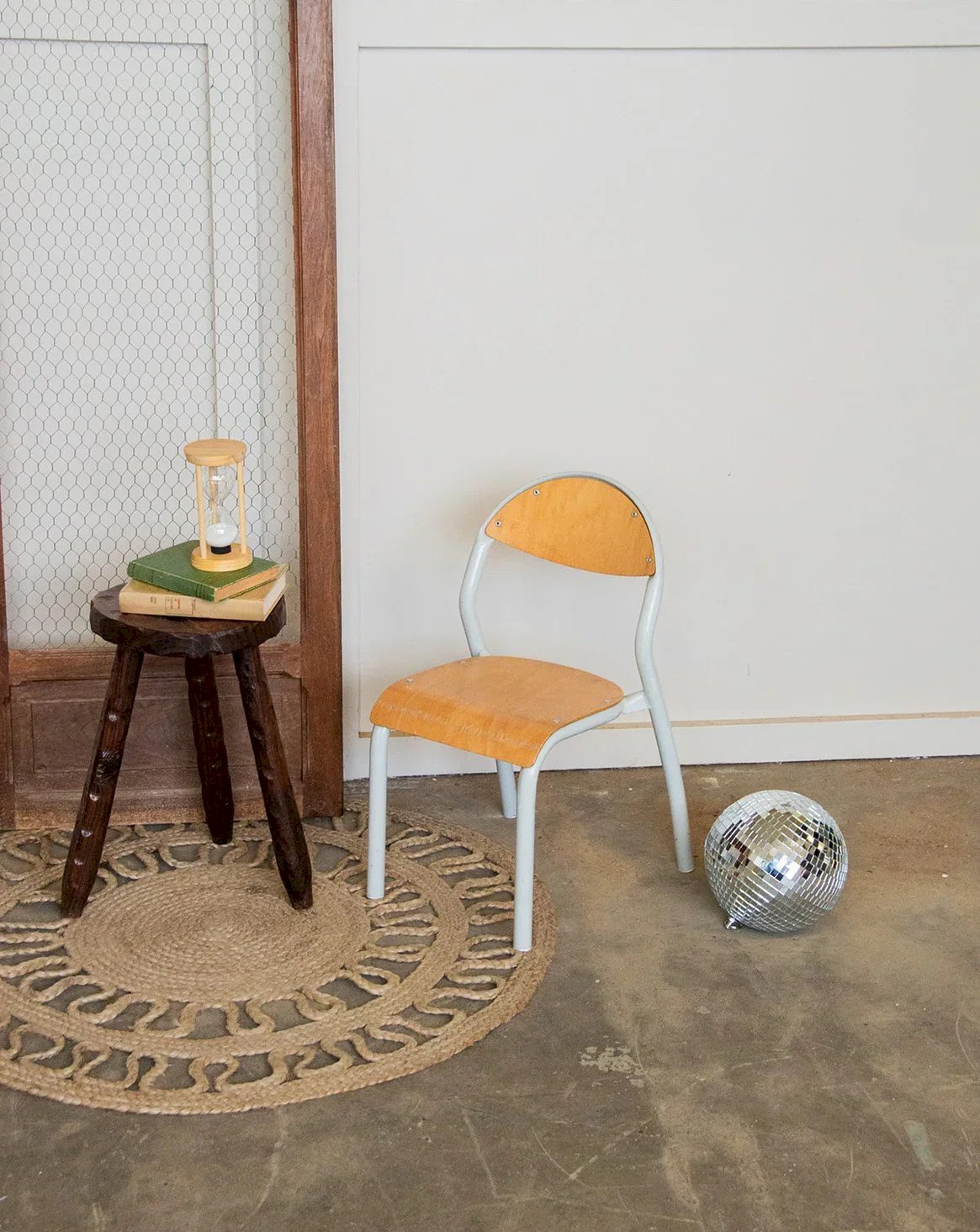 Discover this small white/grey metal school chair, combining elegance and modernity. Its backrest adds an original touch, while the light wooden seat ensures comfort and style. Perfect for enhancing your interior or terrace, it will charm you with its lightness and practicality. Adopt it for a warm and contemporary atmosphere! Web exclusive, the meeting will take place at your home! Length: 29 cm Width: 28 cm Height: 58 cm Seat height: 31 cm Condition: Used: Item has been used. Item shows some superficial signs of wear, ...Used: Item has been used. Item shows some superficial signs of wear, fully operational and functioning correctly. It may be a demonstration model or an item returned to the store after a short period of use. any imperfections. Color: Multicolored Height: Country Width: Wood, Metal Length: Chairs Brand: Debongout Type: Thrifted Product Material: Wood, Metal Style: Country Assembly required: No Assembly level: Fully assembled