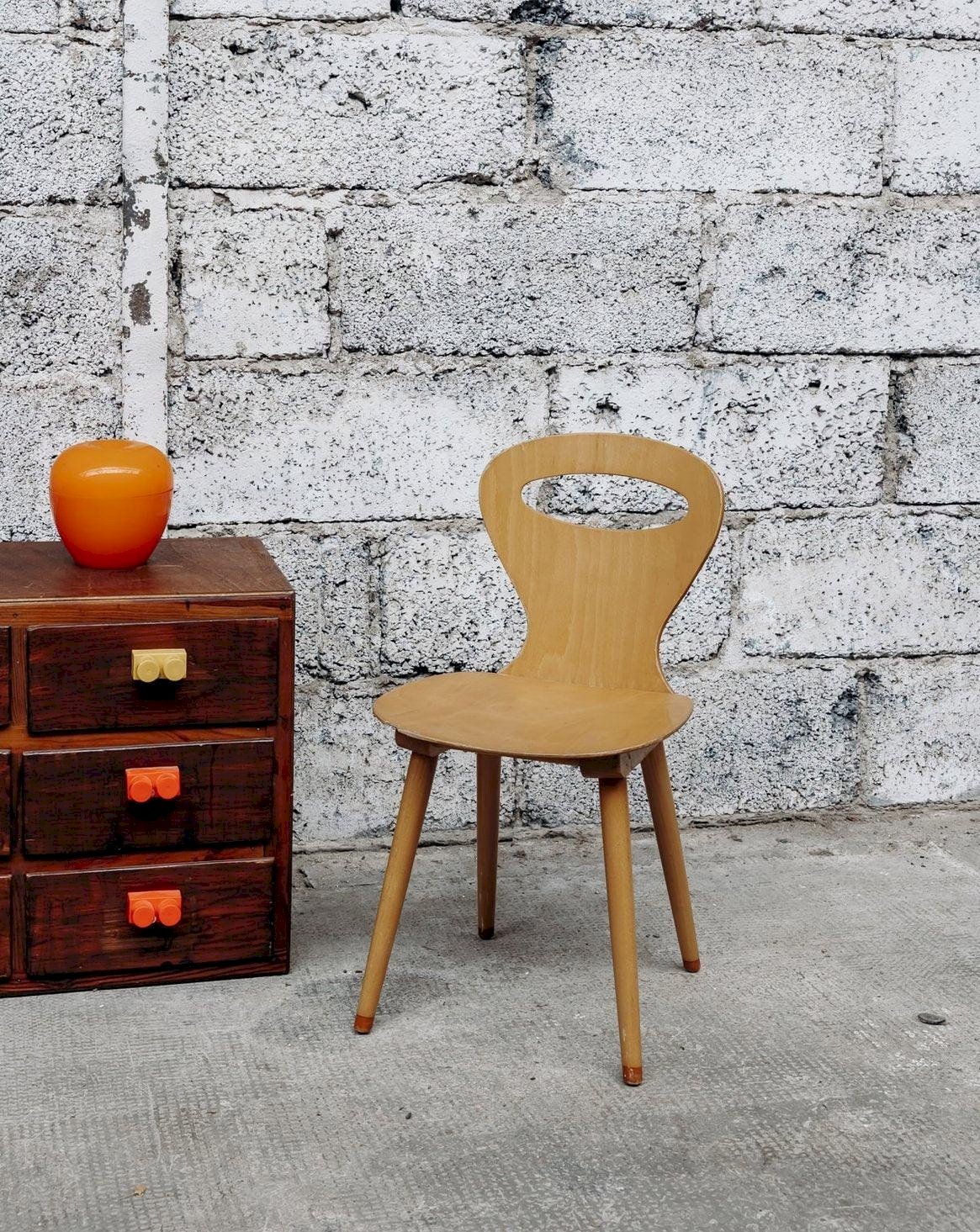 This small Baumann children's chair in light wood combines a clean design and robustness. Its natural wood structure offers both comfort and sturdiness, while its simple and elegant lines integrate perfectly into a bedroom or play area. Ideal for a Scandinavian or minimalist interior, it adds a soft and timeless touch to the child's world. Sold individually, 2 quantities are available. Length: 32 cm Width: 33 cm Height: 66 cm Seat height: 36 cm Condition: Used: Item has been used. Item shows some signs of superficial wear... Used: Item has been used. Item shows some signs of superficial wear, fully operational and functioning correctly. It may be a demonstration model or an item returned to the store after a short period of use. any potential imperfections. Color: Multicolor Height: Country Width: Wood Length: Chairs Brand: Debongout Type: Vintage product Material: Wood Style: Country Assembly required: No Assembly level: Fully assembled.
