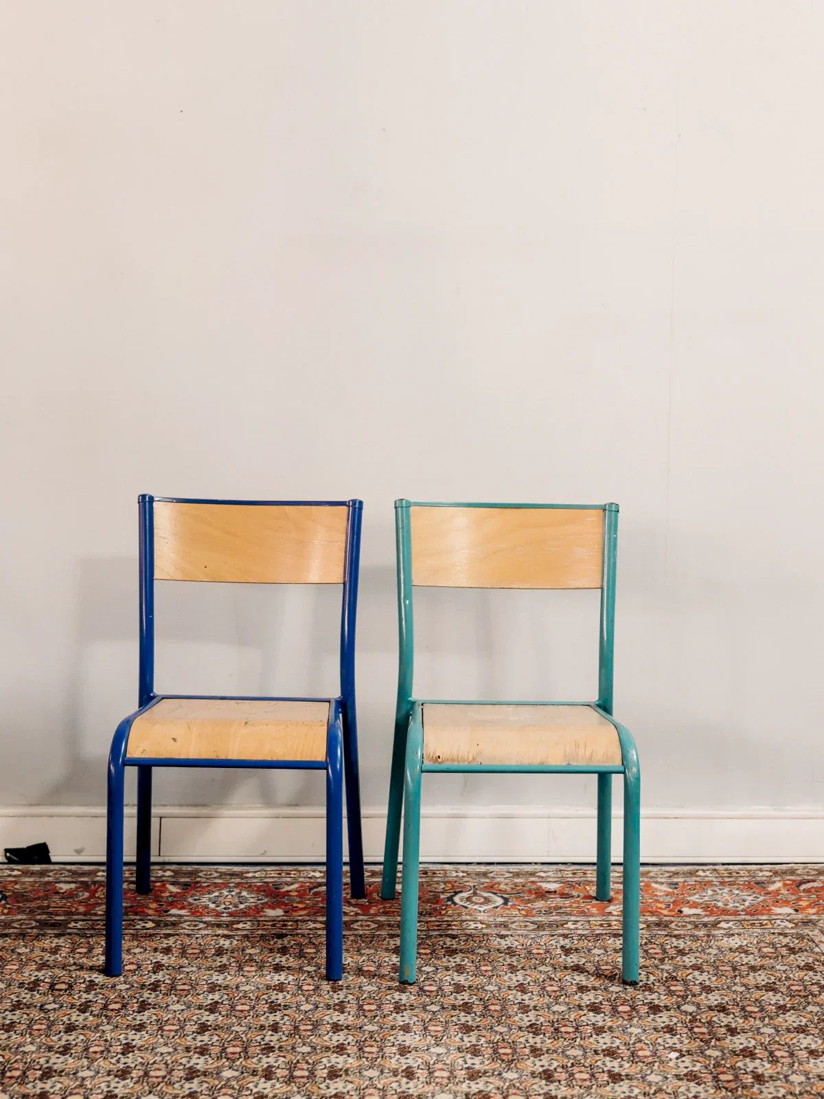 Embrace this dark blue metal chair with a simple and balanced design, combining a wooden seat and backrest for a warm and structured alliance. Its lightweight construction and compact proportions make it suitable for both an urban kitchen and a small office corner or intimate dining room, offering comfortable support and a graphic silhouette. The contrast between the deep metal hue and the wood's patina brings a friendly and contemporary atmosphere. Some signs of use that add to its authenticity. Length: 34 cm Width: 32 cm Height: 70 cm Seat height: 40 cm Condition: Used: Item that has been used. Item showing some superficial wear, fully operational and functioning correctly. It may be a display model or an item returned to the store after a short period of use. Any imperfections should be noted. Color: Multicolor Height: Country Style Width: Metal, Wood Length: Chairs Brand: Debongout Type: Vintage product Material: Metal, Wood Style: Country Assembly required: No Assembly level: Fully assembled