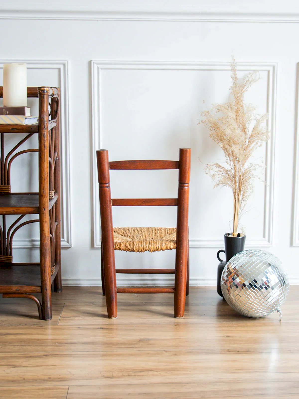 Dive into rustic elegance with our wooden and straw chair, featuring a slightly orange wood finish. Its design inspired by country style brings warmth and friendliness to your interior. Ideal for creating an authentic atmosphere around your table, it stands out with its compact dimensions, perfect for a child. Exclusive to the web, the meeting will take place at your home! Width: 27 cm Height: 49 cm Seat height: 22.5 cm Depth: 24 cm Condition: Used: Item has been used. Item shows some superficial signs of wear...Used: Item has been used. Item shows some superficial signs of wear, fully operational and functioning correctly. It may be a display model or an item returned to the store after a short period of use, taking into account any imperfections. Color: Multicolored Height: Country Width: Straw, Wood Length: Chairs Brand: Debongout Type: Vintage product Material: Straw, Wood Style: Country Assembly required: No Assembly level: Fully assembled