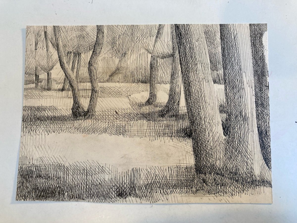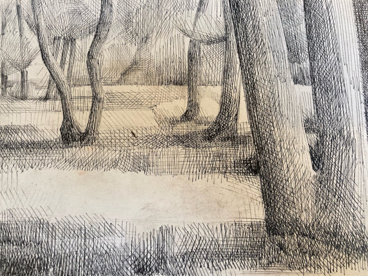 Etching Aquatint 1950 Landscape Tree Forest Art Lithograph Print Antique Art