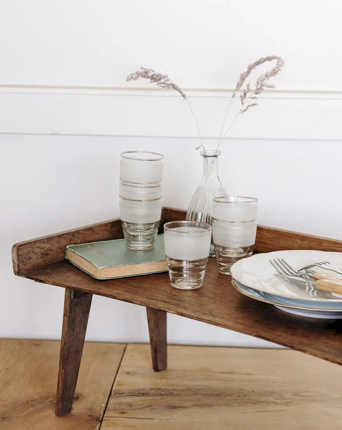 Add a touch of vintage charm with this set of small glasses. Each glass features a delicate opaque detail and fine golden outlines. Perfect for digestifs or elegant tastings. Their compact size makes them as practical as they are aesthetic. A refined set for your festive tables or your collection. Height: 8 cm Diameter: 6 cm Condition: Used: Item has been used. Item showing some superficial wear marks, entirely operational and functioning correctly. It may be a demonstration model or an item returned to the store after a short period of use. Any imperfections. Brand: Debongout Type: Thrifted product Material: Glass Style: Country