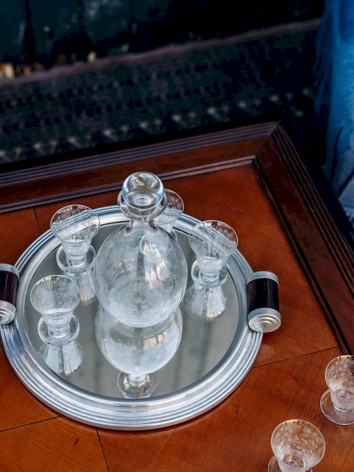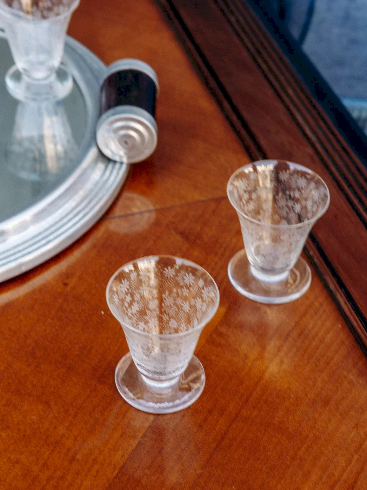 Add a touch of elegance to your social gatherings with this charming set of 6 glasses and its carafe, finely decorated with engraved flowers. The carafe, equipped with a removable stopper, perfectly combines practicality and aesthetics, ideal for preserving your beverages with refinement. This set, perfect for enhancing your aperitifs and dinners, will add a note of sophistication to your table. Height: 19 cm Diameter: 9 cm Condition: Used item: An item that has been used. Item showing some superficial signs of wear, ...Used item: An item that has been used. Item showing some superficial signs of wear, fully operational and functioning correctly. It may be a demonstration model or a returned item after a short period of use. Any imperfections. Brand: Debongout Type: Thrifted product Material: Glass Style: Country