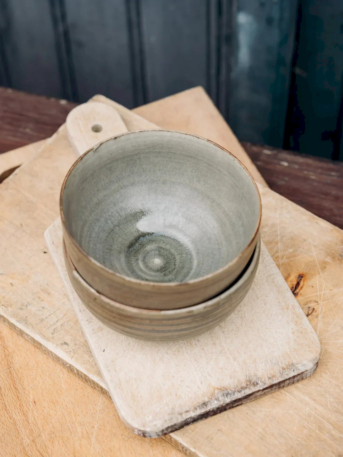 Discover our pair of brown-green stoneware bowls, a true gem to enhance your meals! Their meticulous finish and natural hues add a warm and authentic touch to your table. Perfect for all your meals, these bowls combine practicality and aesthetics. An irresistible duo that will bring charm and conviviality to every shared moment. Height: 6.5 cm Diameter: 13 cm Condition: Used: Item has been used. Item shows some superficial wear marks, ... Used: Item has been used. Item shows some superficial wear marks, fully operational and functioning properly. It may be a demonstration model or a returned item after a short period of use. any potential imperfections. Brand: Debongout Type: Vintage product Material: Stoneware, Earthenware Style: Country