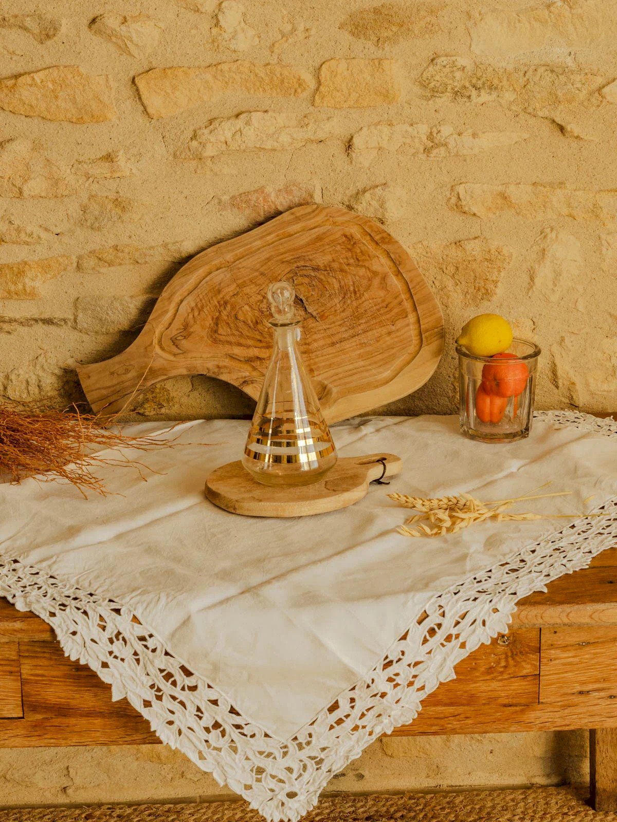 Add this liquor set consisting of a decanter and eight fine glass glasses, adorned with gilding, which brings retro elegance to your tasting moments. The decanter, with its slender profile, complements the delicate small glasses, ideal for fine digestifs or an elegant aperitif among friends. The subtle gilding captures the light and creates a warm and sophisticated atmosphere, perfect for a carefully set table. Decanter Height: 22 cm Diameter: 8 cm Glass Height: 7 cm Diameter: 5 cm Condition: Used: Item has been used. Item shows some signs of superficial wear... Used: Item has been used. Item shows some signs of superficial wear, fully operational and functioning correctly. It may be a demonstration model or an item returned to the store after a short period of use, including possible imperfections. Brand: Debongout Type: Thrifted product Material: Glass Style: Country