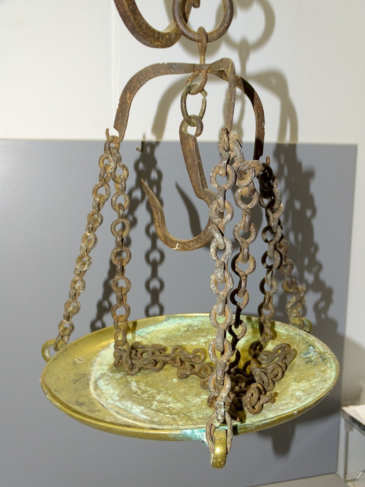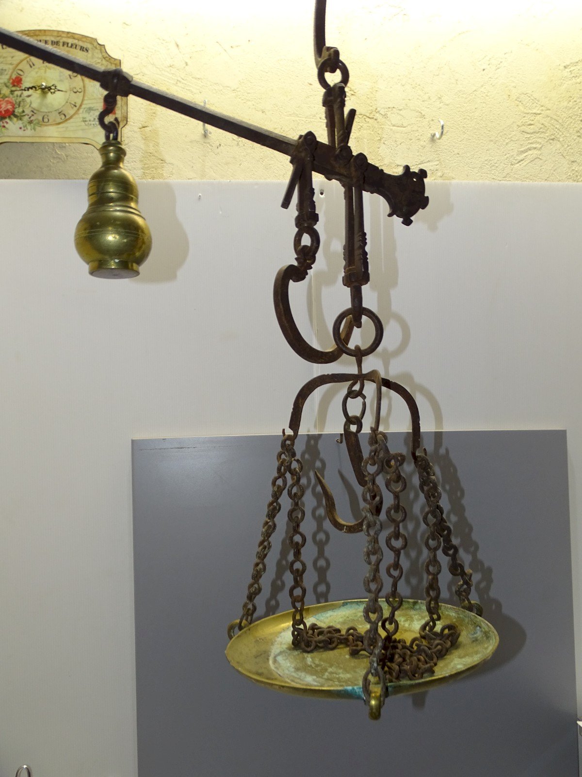 Exceptional Roman balance from the 18th century - forged iron chains - bronze platform and weights - graduated up to 35 kg (see photos) - In superb condition, found in a barn, needs cleaning - Ref: 1V251219/56 - Length 91.5 cm - Platform diameter 25.5 cm - Weight 7 kg - For any questions: SHIPPING POSSIBLE WITH MONDIAL RELAY or COLISSIMO upon request, VERY GOOD PACKAGING GUARANTEED. THANK YOU for TAKING A GOOD LOOK at ALL the PHOTOS as THEY ARE INTEGRAL PART of the DESCRIPTION and ALLOW YOU to SEE the ITEM at its BEST with ITS POSSIBLE MINOR DEFECTS - Condition: Used: Item has been used. Please consult the seller's description for more details ...Used: Item has been used. any possible imperfections.