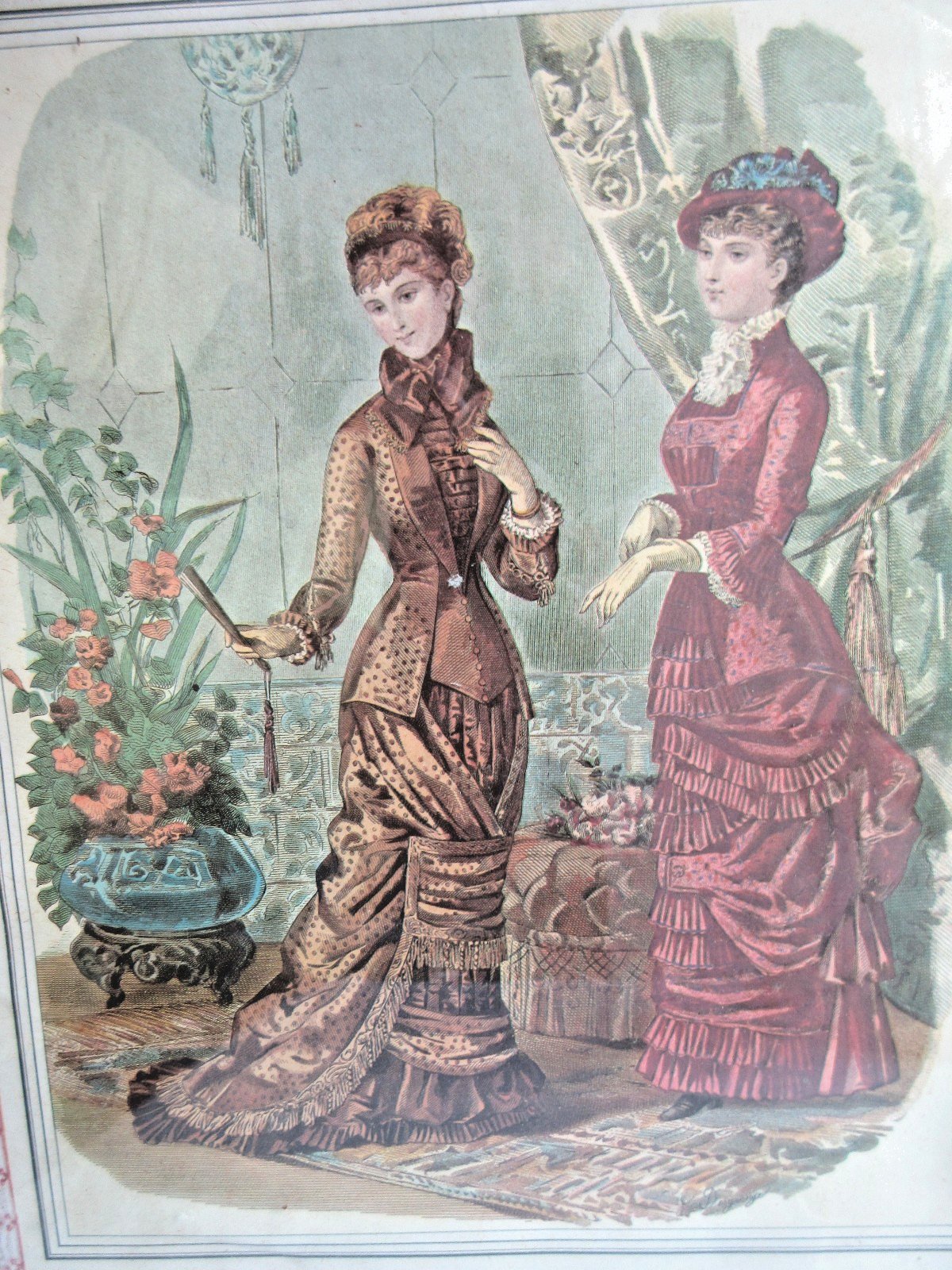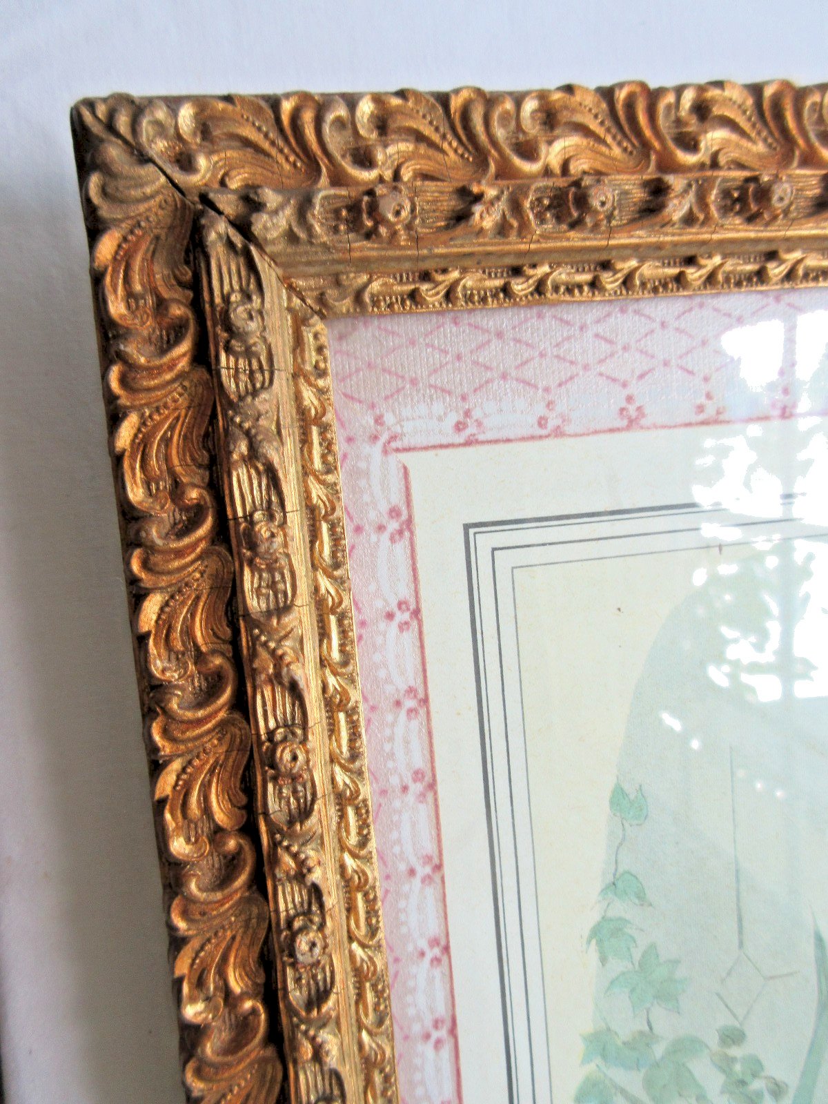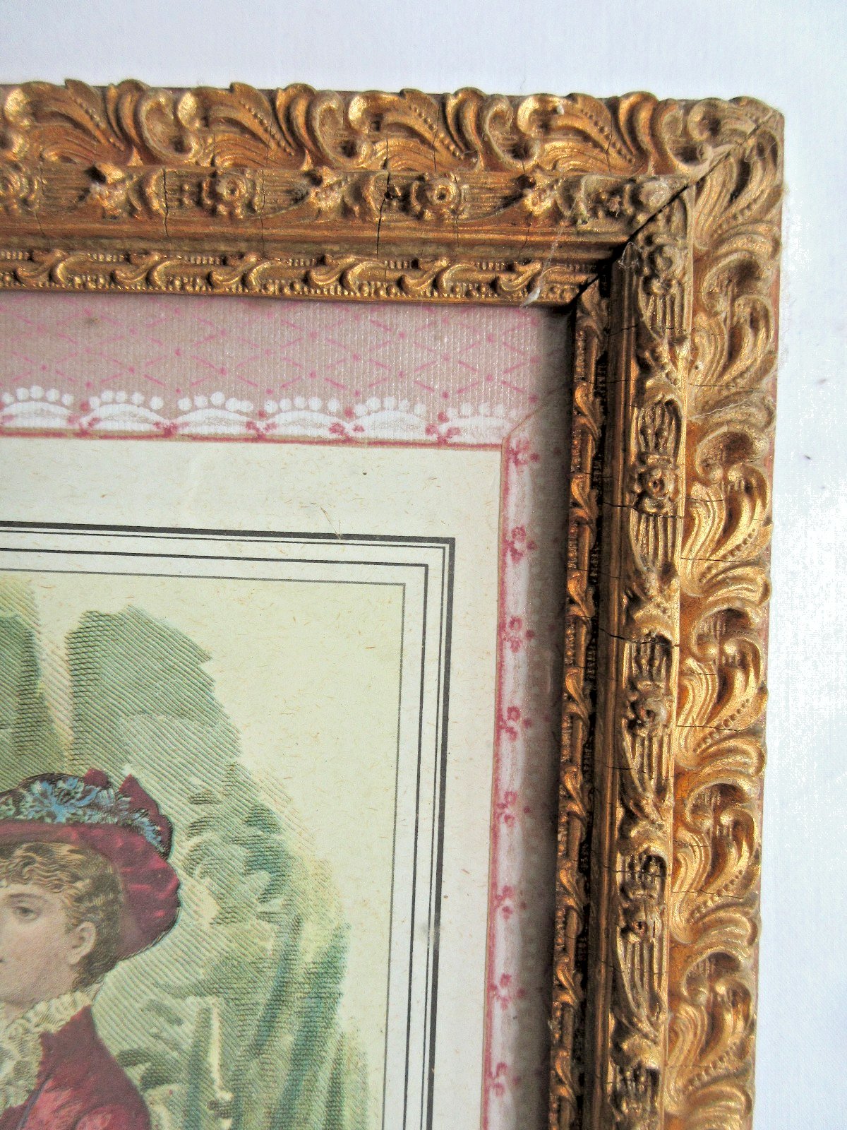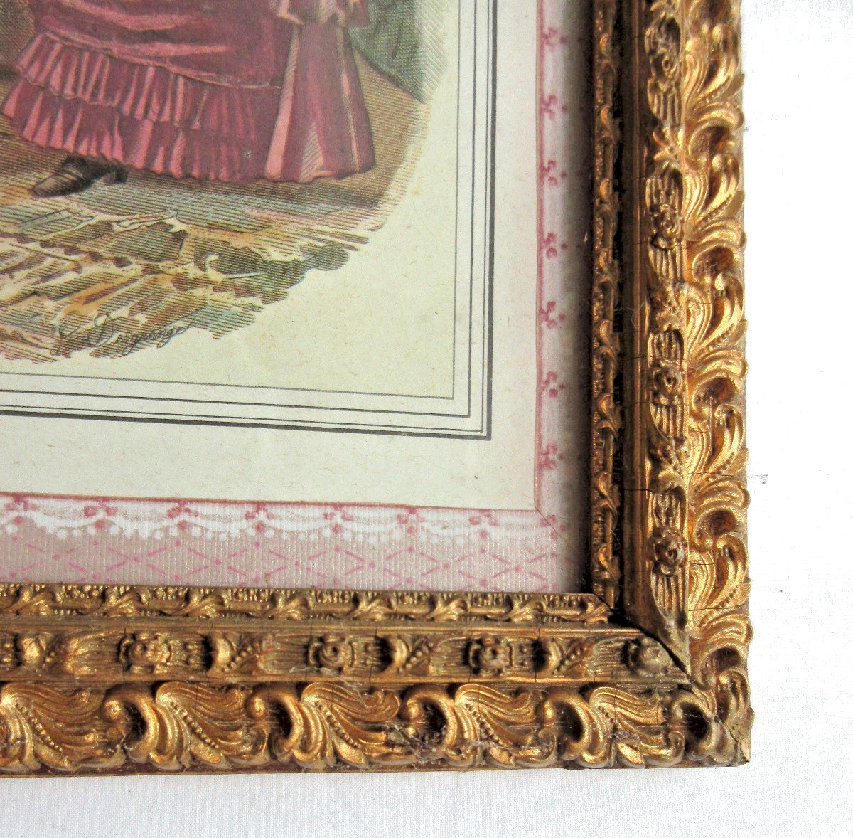 Worldwide sale. Fashion engraving from 1900. The frame is made of gilded wood, beautifully carved. It comes with its original glass. The engraving depicts 2 young women in evening wear. The colors are truly stunning. Frame: 40 cm by 31.5 cm. Glass: 34 cm by 26 cm. Good condition, high quality, no defects. Shipping in secure packaging. Authenticity: Original Type: Showcase item, Decorative Origin: France Subtype: Frame Style: Napoleon III Material: Wood