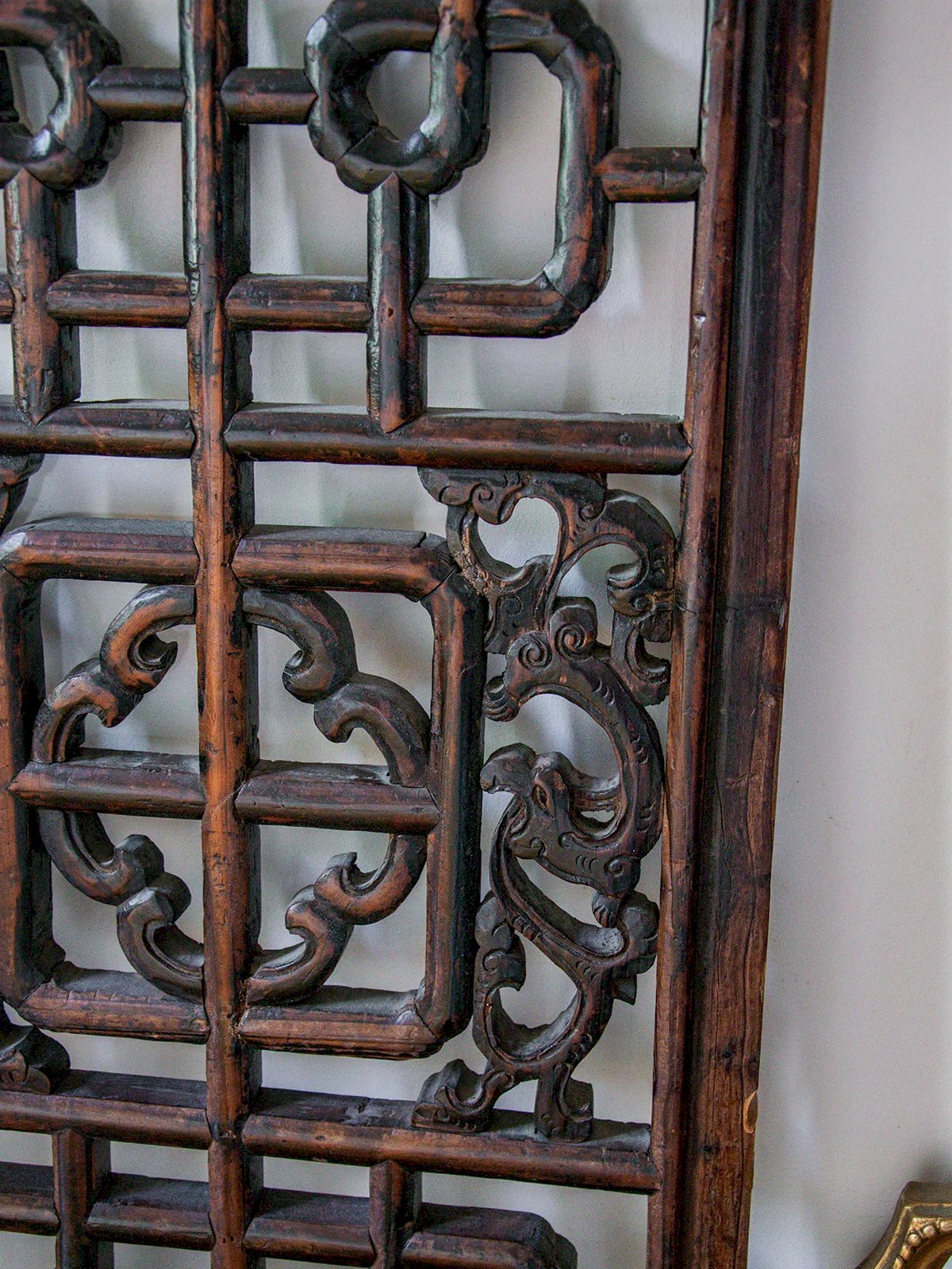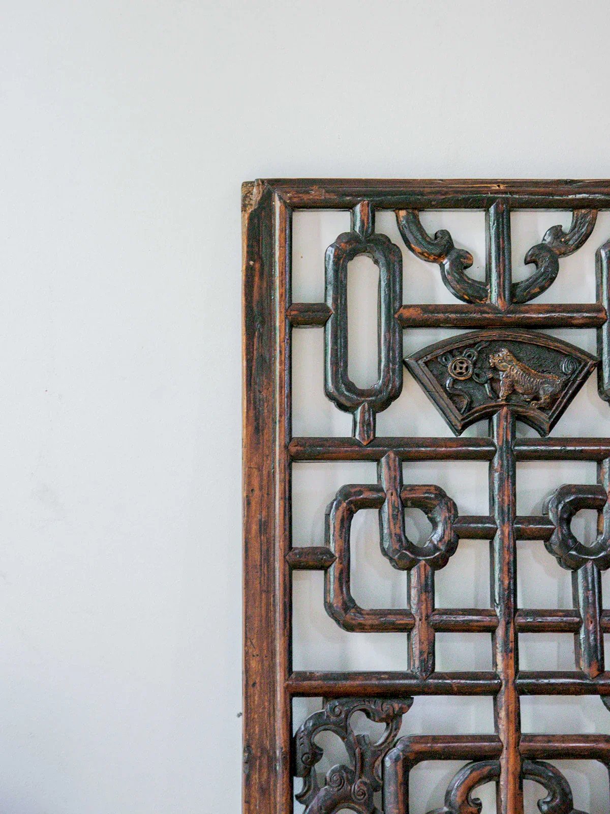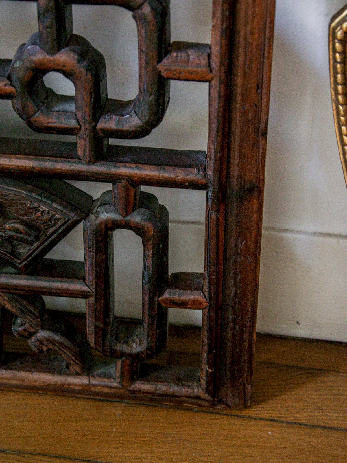 Discover this Asian wall decoration made of dark wood, finely carved in the spirit of a traditional screen. Its openwork pattern adds a touch of elegance and mystery to any interior. Ideal for dressing a wall with character and authenticity. Some signs of time bear witness to its history. A unique decorative piece with timeless charm. Length: 40 cm Height: 104 cm Condition: Used: Item that has been used. Item showing some superficial signs of wear, entirely operational and functioning correctly. It may be a display model or an item returned to the store after a short period of use. Any imperfections. Brand: Debongout Type: Vintage product Material: Wood Style: Country