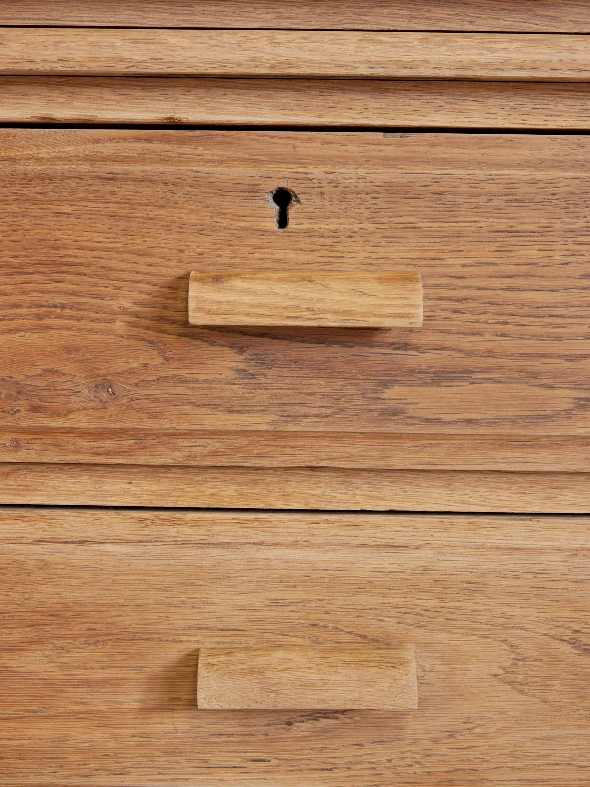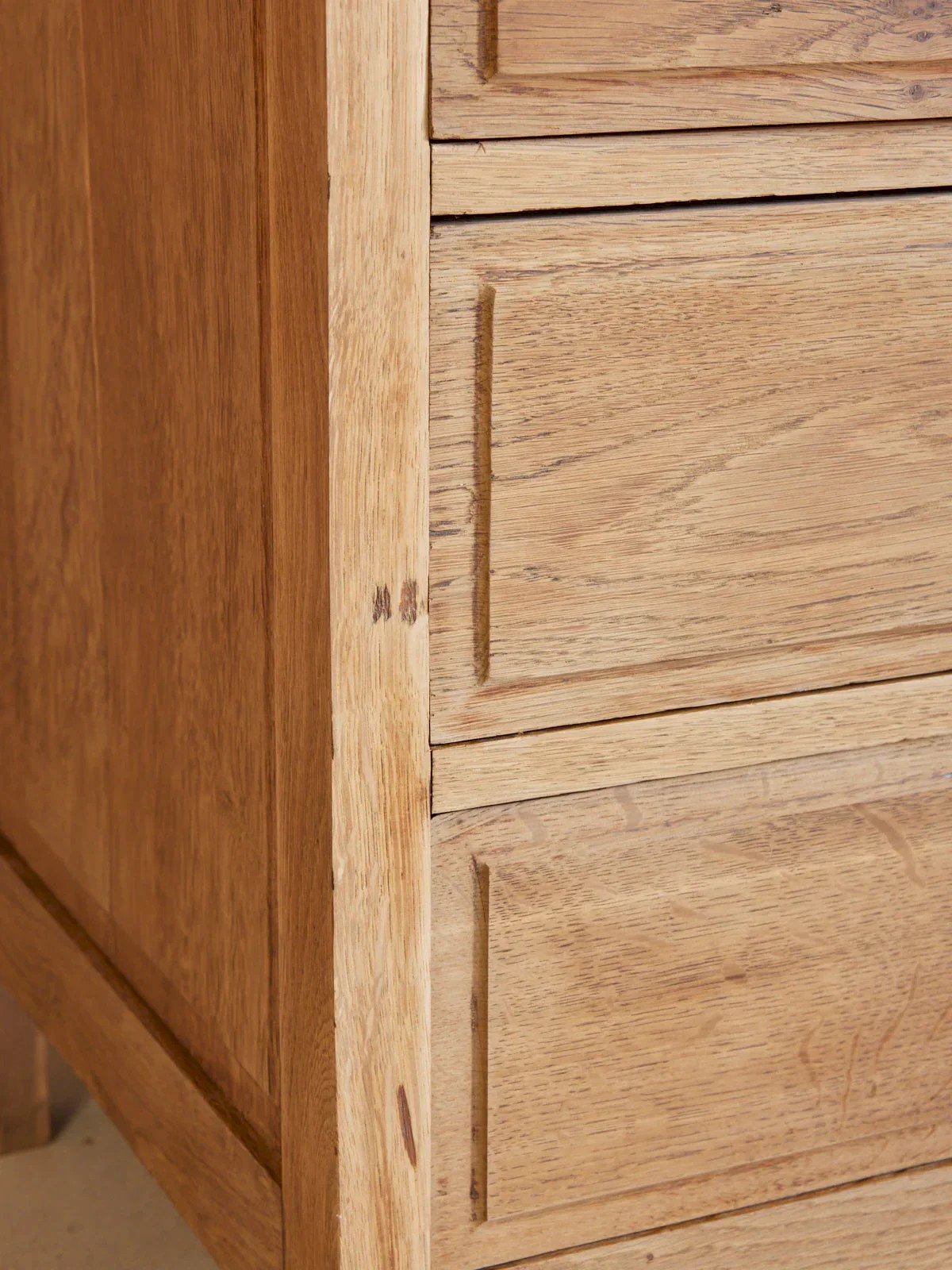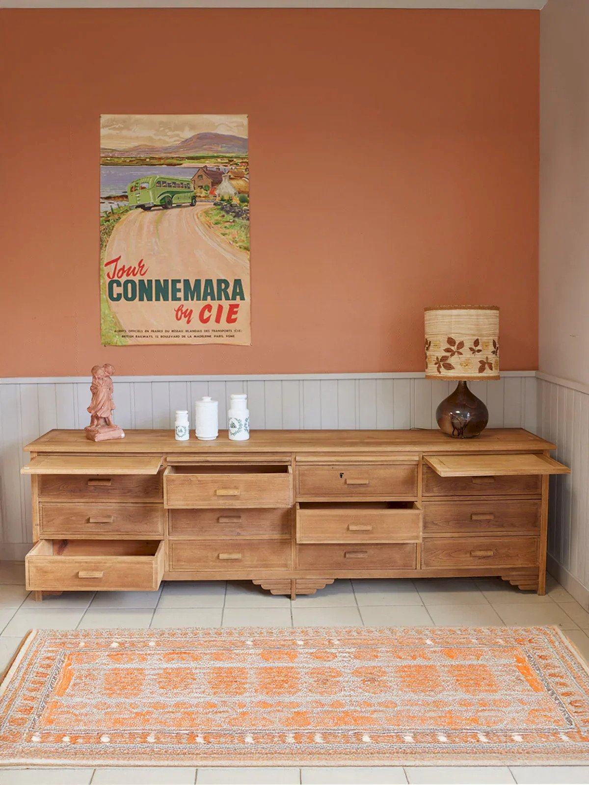 Discover this large vintage work cabinet made of solid oak, custom-made and originating from the worlds of pharmacy and jewelry. Its twelve large drawers offer generous storage while four sliding trays, originally designed to display and prepare pieces, add refined functionality. Now fully restored and sanded, it reveals the warmth of the wood and proportions suited for an interior, workshop, or boutique, providing a presence that is both practical and full of character. Length: 238 cm Width: 46 cm Height: 73 cm Condition: Used: An item that has been used. Item showing some superficial signs of wear... Used: An item that has been used. Item showing some superficial signs of wear, fully operational and functioning correctly. It may be a demonstration model or an item returned to the store after a short period of use. possible imperfections. Brand: Debongout Type: Vintage product Material: Wood Style: Country Customized: Work furniture