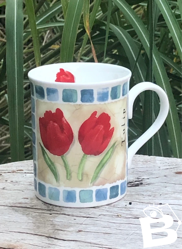 Fine Bone China porcelain cup with Tulip pattern in excellent condition. Height 9.3 cm Diameter 7.8 cm.