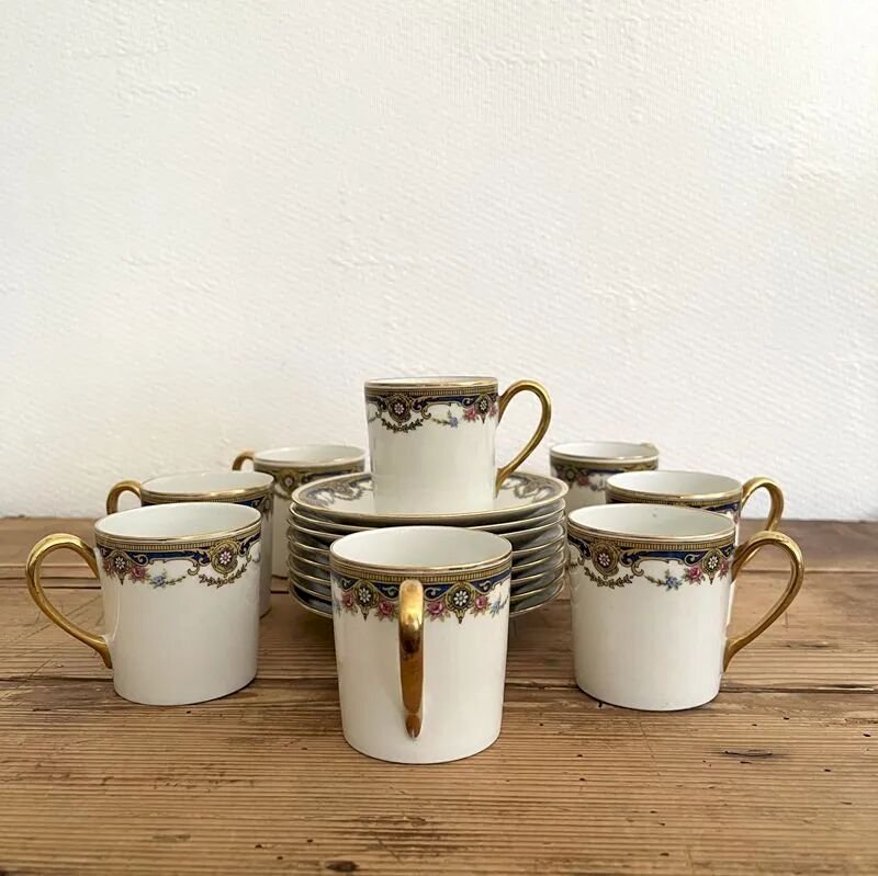 Rediscover the art of entertaining with this exceptional coffee set made of fine Limoges porcelain, bearing the prestigious signature of the Jean Boyer house, founded in the early 20th century, a house that embodies French luxury.