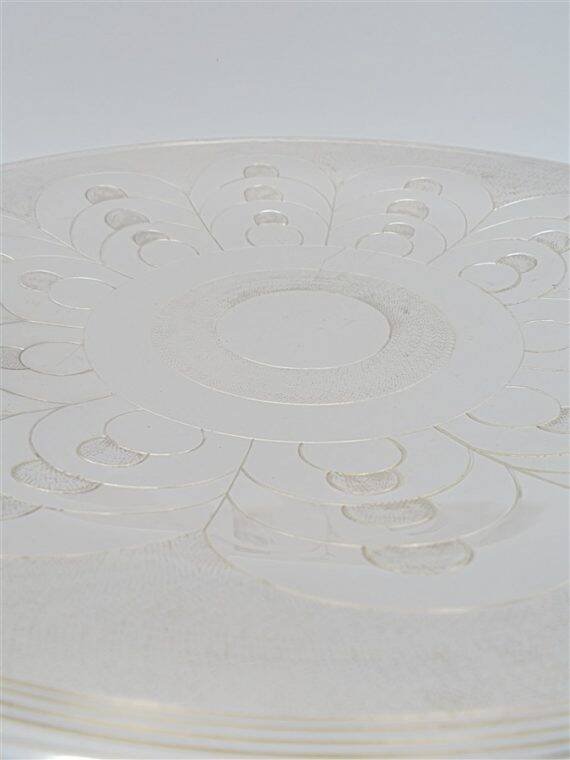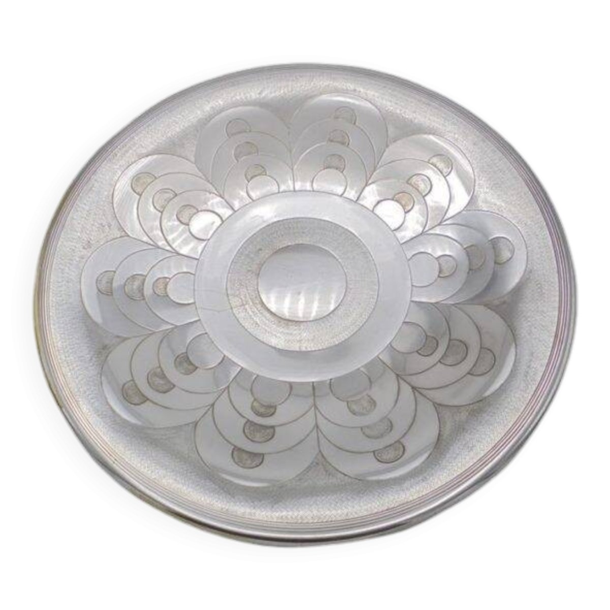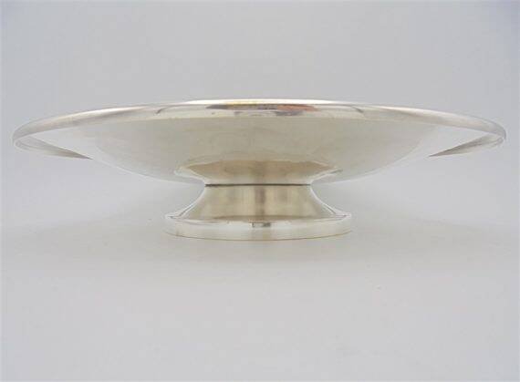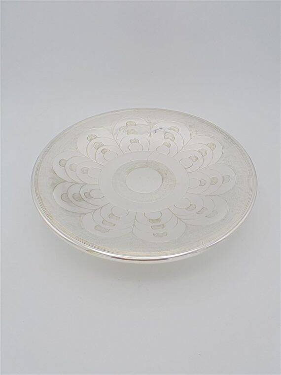 Silver-plated metal serving platter. It has some scratches. Diameter: 29.5 cm. Height: 6 cm. Depth: 3 cm. L: 29 W: 3 H: 6