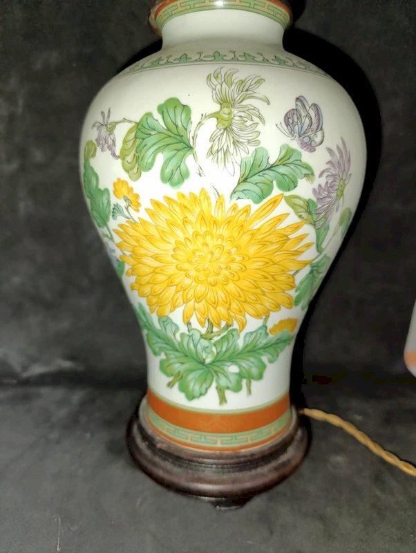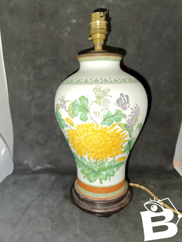 floral decorative lamp on a Haviland Limoges vase base in good condition, interior of the lamp with sand for stability, total height 32cm, normal minor signs of wear due to age.