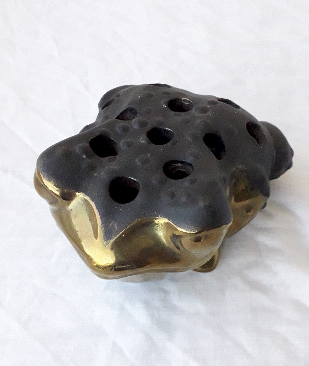 Ceramic flower holder in the shape of a frog, without any manufacturer indication.