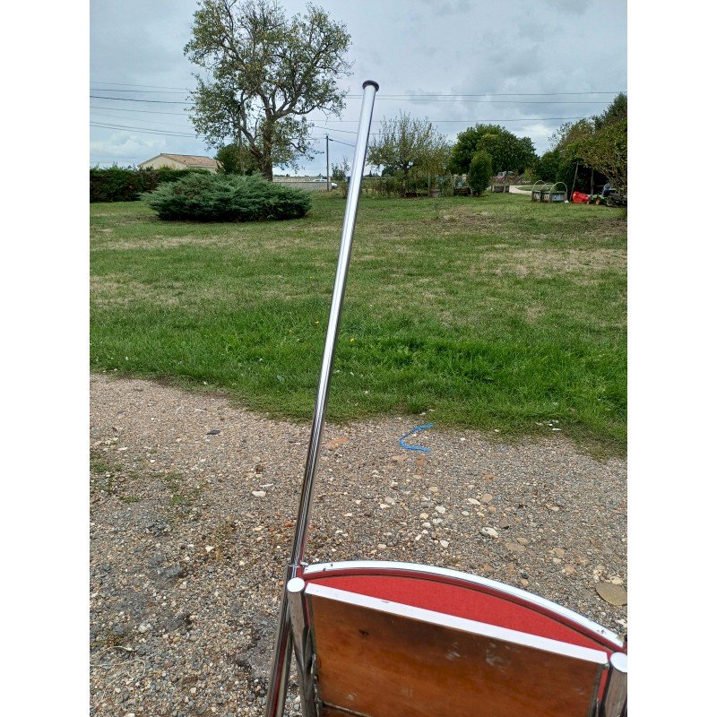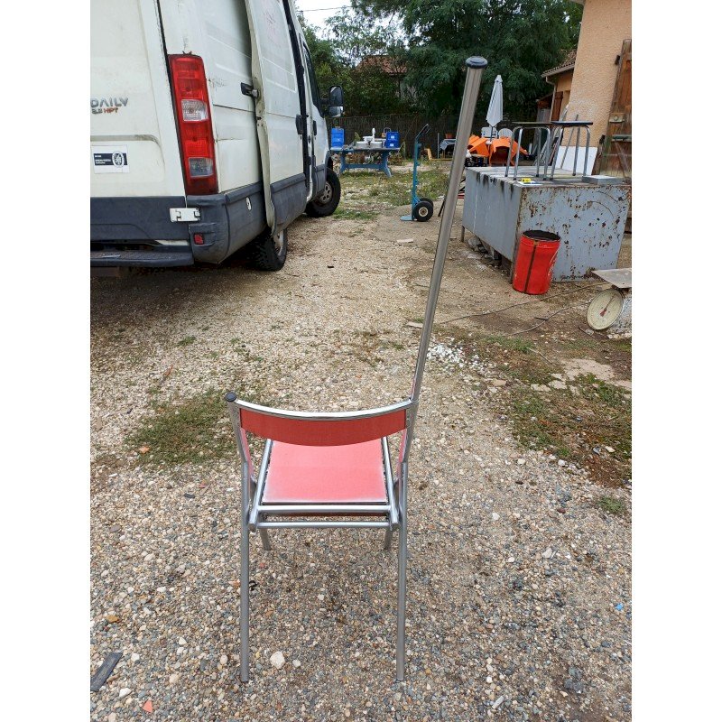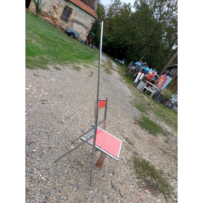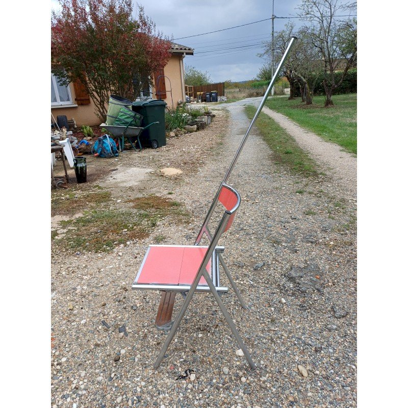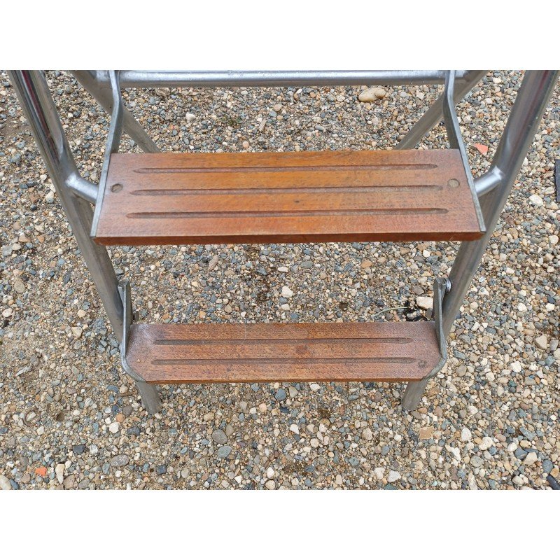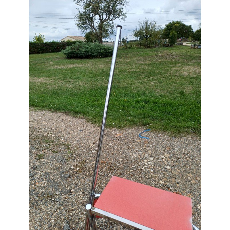 Formica folding step stool chair, wood, chrome metal structure, 4 steps + 1 support bar, height: 77 cm, seat height: 43 cm, step stool height: 78 cm, with support bar: 142 cm, weight: 8 kg, very good condition.
