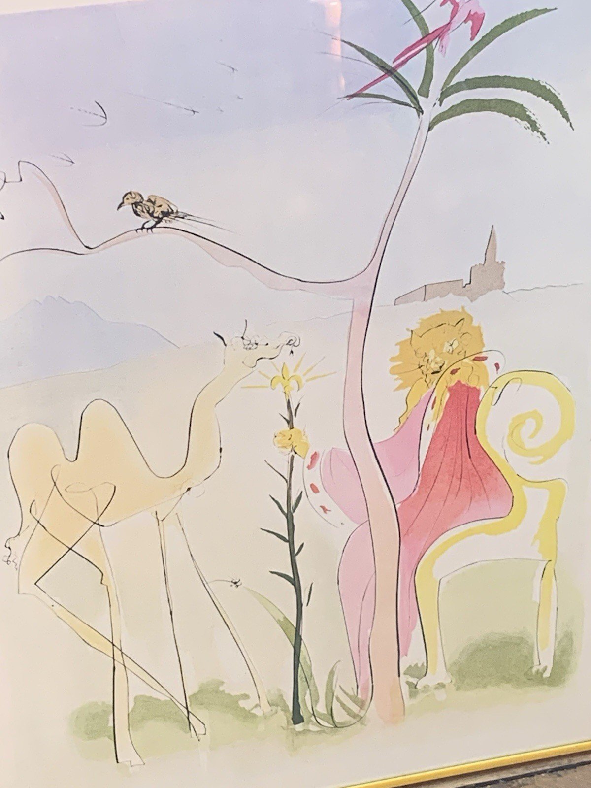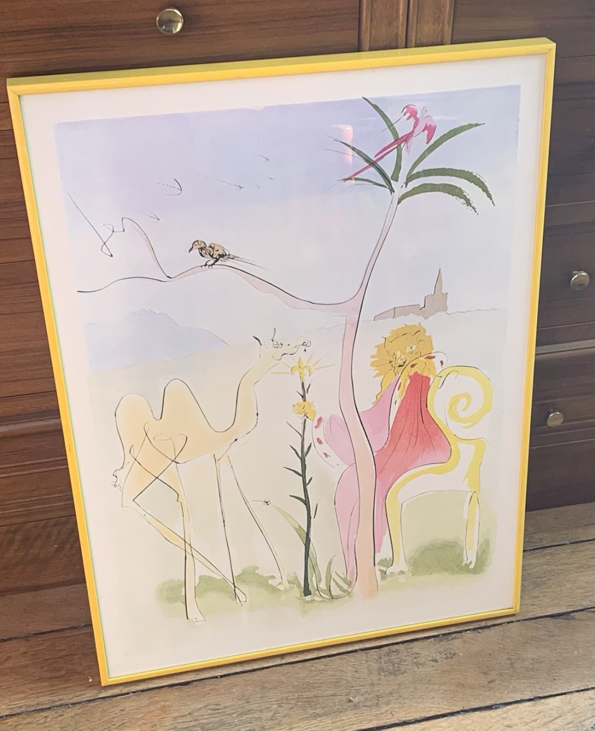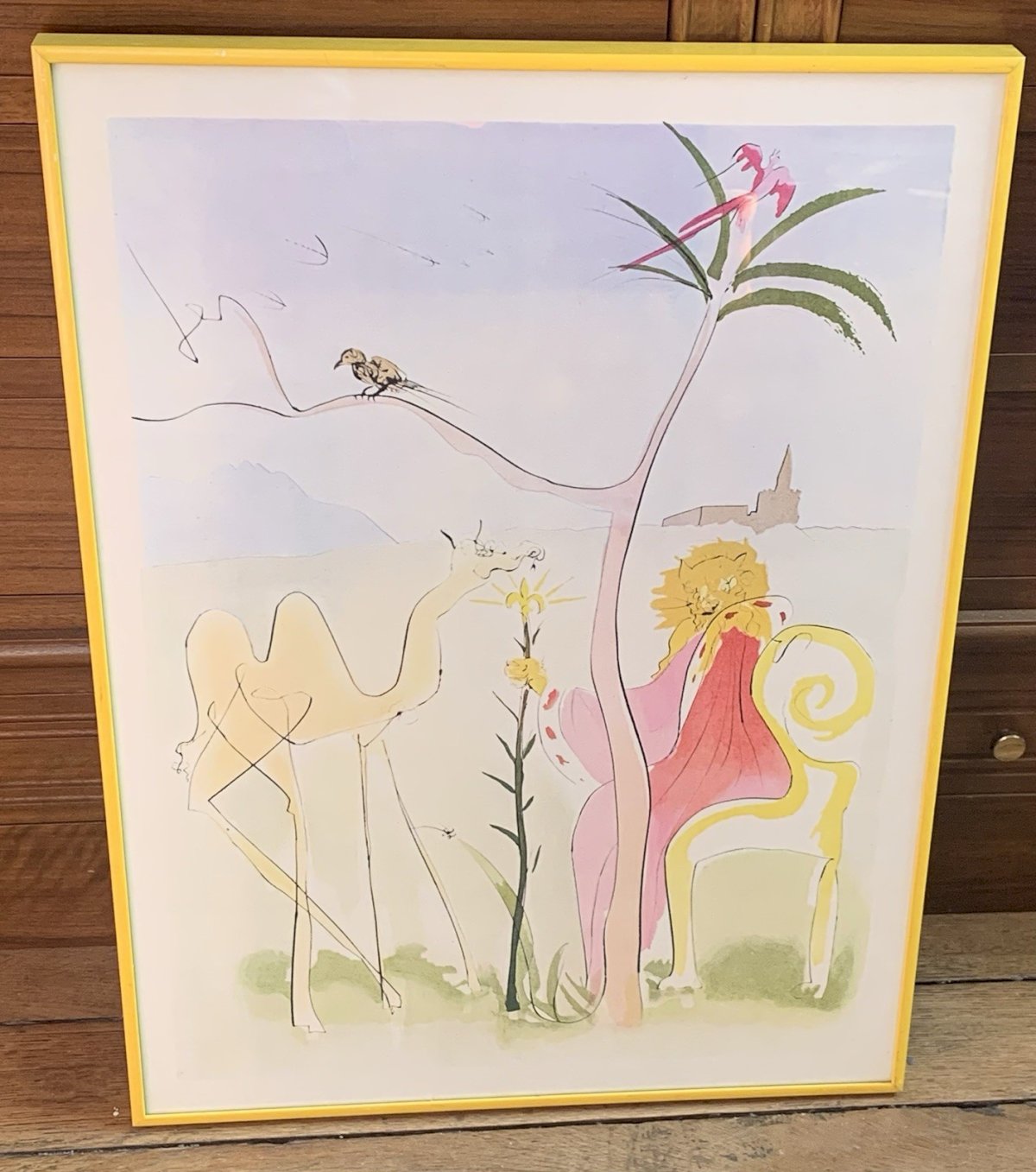 Beautiful framed poster After Dali "the lion and his court" Offset lithograph Metal frame Circa 1990's Very good condition Frame size: 58x43cm Period: Contemporary (After 1980) Country of manufacture: France Style: Unspecified Dimensions: 40 x 60 cm Theme: Art Artist: Dali