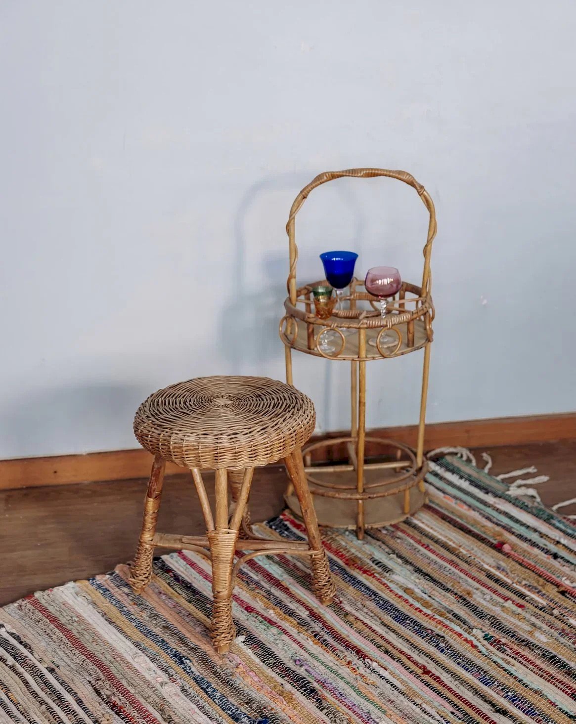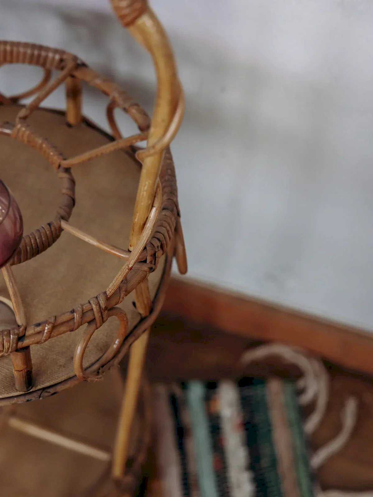 This rattan side table brings a natural and elegant touch to your interior. Its lightweight design and organic materials create a warm and timeless atmosphere. Perfect for a bohemian or vintage style, it easily fits into any room while adding a note of charm and practicality. Length: 33 cm Width: 33 cm Height: 80 cm Condition: Used item. Item shows some signs of superficial wear, fully operational and functioning correctly. It may be a demonstration model or an item returned to the store after a short period of use, including any imperfections. Brand: Debongout Type: Thrifted product Material: Rattan Customized: Side tables Style: Country.