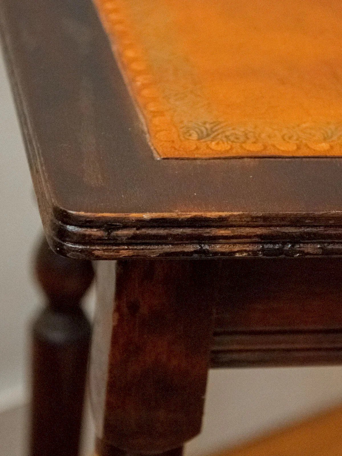 Discover this rectangular wooden side table, topped with a leather-covered surface that adds a touch of matte and tactile elegance. Its compact and slightly narrow silhouette invites you to slide it next to an armchair, at the end of a sofa, or as a side table in an entrance where it will hold a lamp, book, or plant. The combination of warm wood and structured leather creates a sober and welcoming atmosphere, perfect for both contemporary and more classic interiors. Length: 34 cm Width: 27 cm Height: 47 cm Condition: Used: Item has been used. Item shows some superficial signs of wear... Used: Item has been used. Item shows some superficial signs of wear, fully operational and functioning correctly. It may be a demonstration model or an item returned to the store after a short period of use. any potential imperfections. Brand: Debongout Type: Thrifted Product Material: Wood, Leather Custom: Side tables Style: Country