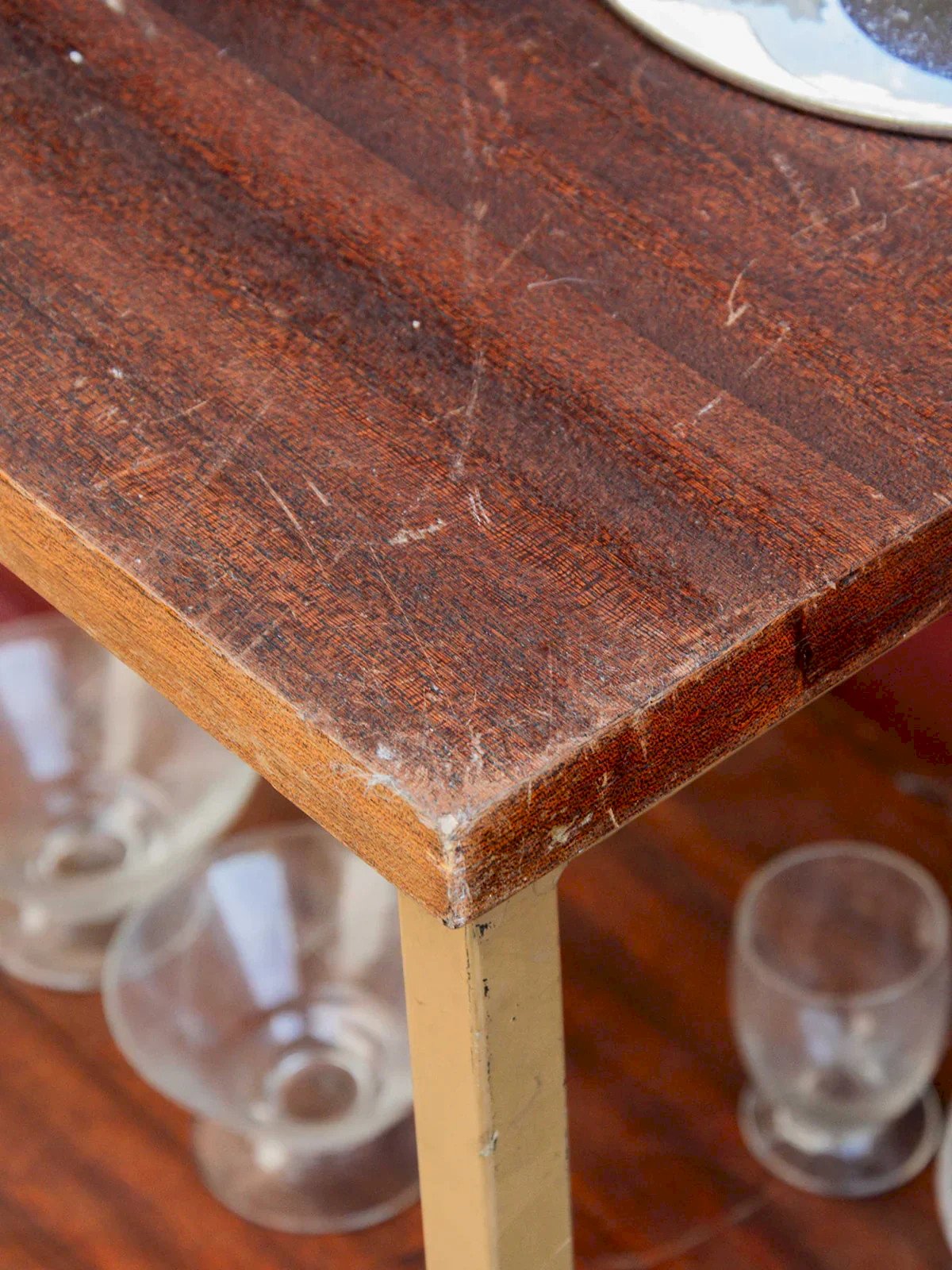 This high side table combines vintage charm and practicality. Featuring two wooden shelves and a brown metal structure, it adds a warm and authentic touch to your interior. Its signs of age tell a unique story, while its open niche is perfect for holding books or decorative items. A characterful ally to optimize small spaces with style. Length: 48 cm Height: 85 cm Depth: 38.5 cm Height of the niche: 37.5 cm Condition: Used: Item that has been used. Item showing some superficial signs of wear, ... Used: Item that has been used. Item showing some superficial signs of wear, fully operational and functioning correctly. It may be a demonstration model or an item returned to the store after a short period of use. Any imperfections. Brand: Debongout Type: Thrifted product Material: Wood, Metal Style: Country Customizable: Side tables