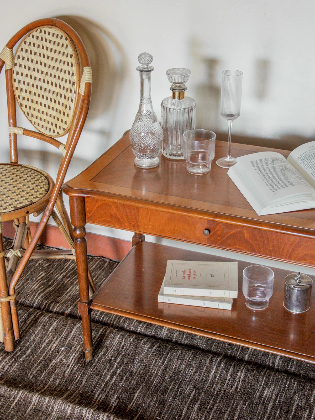 A charming wooden coffee table, ideal for adding an elegant touch to your living room. Its discreet drawer offers practical storage, while its delicate inlays and finely carved straight legs make it a meticulously crafted piece. We love the metal handle that accentuates its contemporary look. A lovely blend of character and functionality, to be adopted without hesitation. Width: 77 cm Height: 57 cm Drawer height: 6.5 cm Depth: 45 cm Niche height: 6.5 cm Condition: Used: Item has been used. Item shows some signs of superficial wear... Used: Item has been used. Item shows some signs of superficial wear, fully operational and working correctly. It may be a display model or an item returned to the store after a short period of use, including any possible imperfections. Brand: Debongout Type: Vintage product Material: Wood Style: Country Customized: Side tables.