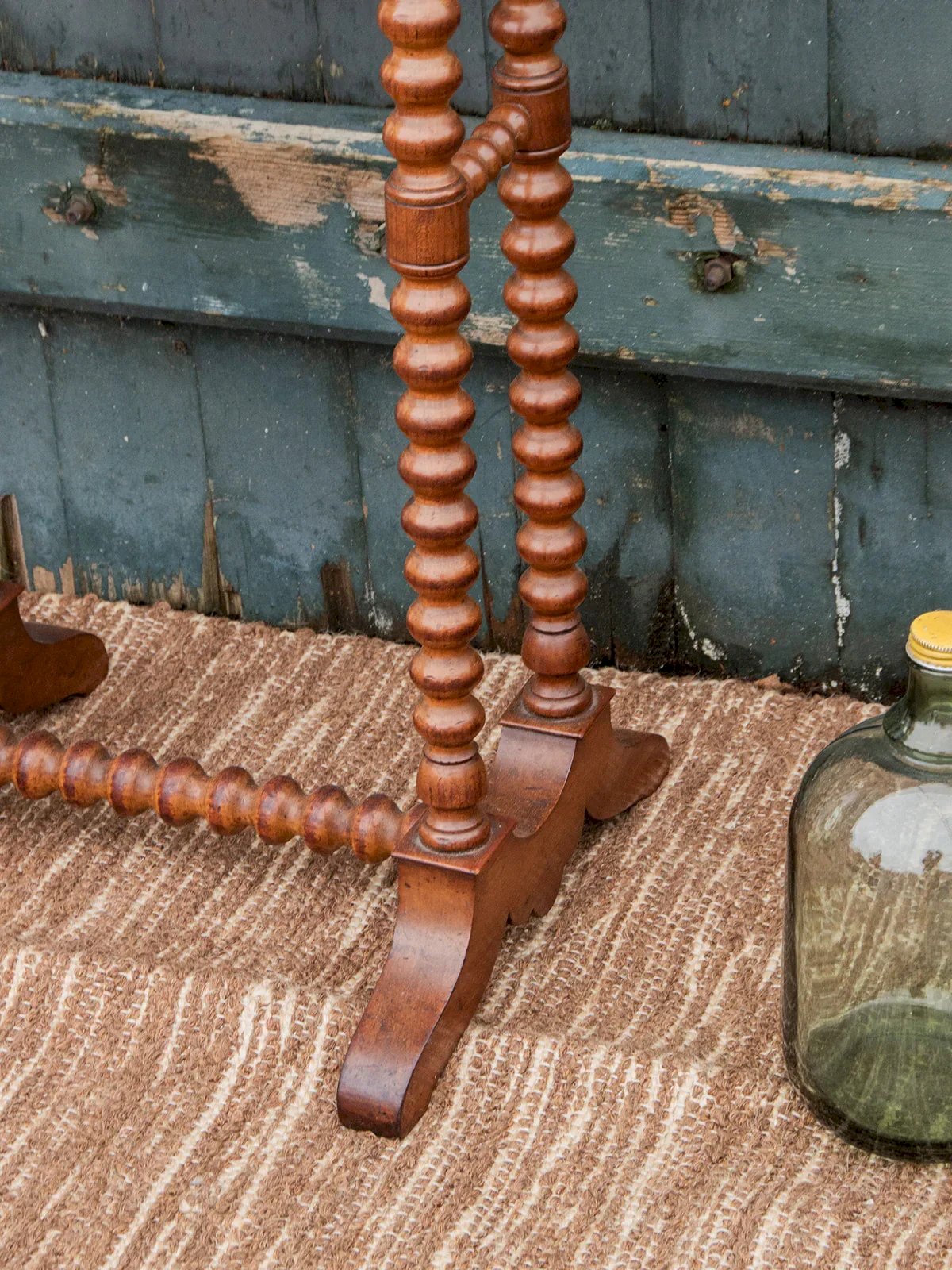 Discover our elegant small side table with its round sculpted legs and charming varnished wood. Featuring a hidden drawer, it combines aesthetics and practicality, providing a discreet storage space for your small items. Perfect for the living room or bedroom, this table will add a touch of elegance and sophistication to your interior decor. A must-have for all lovers of refined design furniture. Length: 46 cm Width: 31 cm Height: 74 cm Condition: Used: Item has been used. Item shows some signs of superficial wear... Used: Item has been used. Item shows some signs of superficial wear, fully operational and functioning correctly. It may be a demonstration model or an item returned to the store after a short period of use. any imperfections. Brand: Debongout Type: Vintage product Material: Wood Style: Country Customized: Side tables