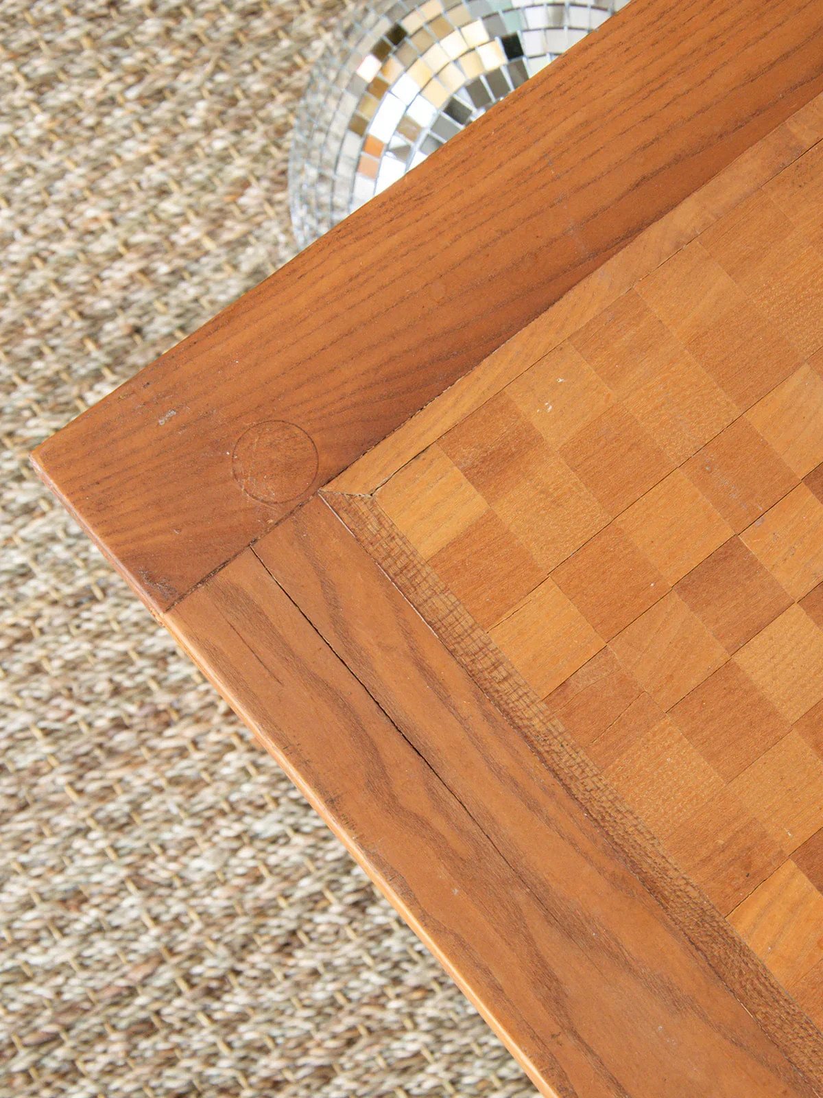Add a playful touch to your interior with this low wooden side table, perfect for game enthusiasts. Its slightly worn game surface tells stories to share during your evenings with friends. Practical and elegant, this piece easily fits into any decorative style while providing additional functionality. A piece of furniture that is both decorative and interactive to enrich your convivial moments. Length: 40 cm Width: 40 cm Height: 35.5 cm Condition: Used: Item has been used. Item shows some signs of superficial wear... Used: Item has been used. Item shows some signs of superficial wear, fully operational and functioning correctly. It may be a demonstration model or an item returned to the store after a short period of use. Any imperfections. Brand: Debongout Type: Thrifted product Material: Wood Customized: Side tables Style: Country