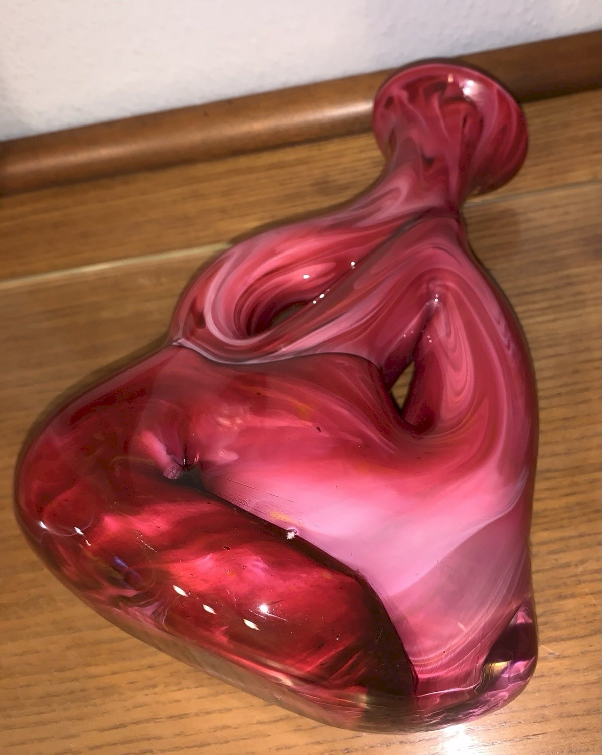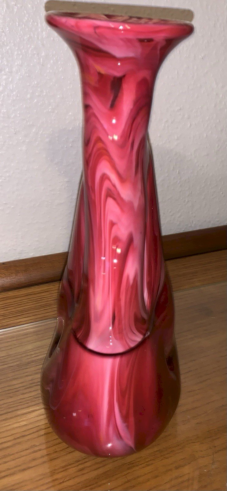 Stunning free-form blown glass vase Circa 1960's Predominantly red with white veining But also translucent and openwork Superb piece in very good condition Height: 26cm Length: 18cm Weight: 1820 grams Country of origin: Italy