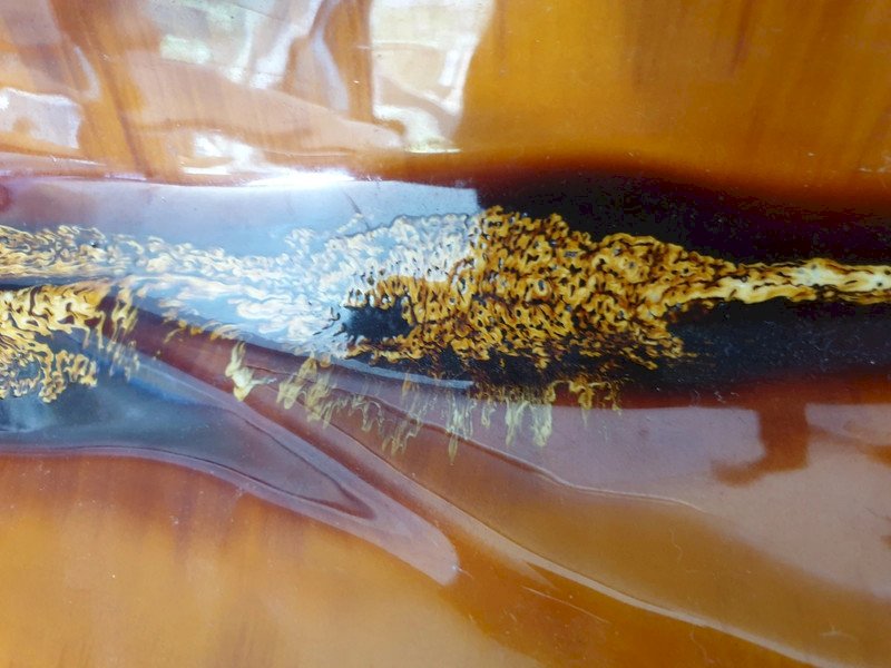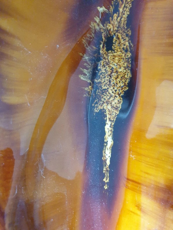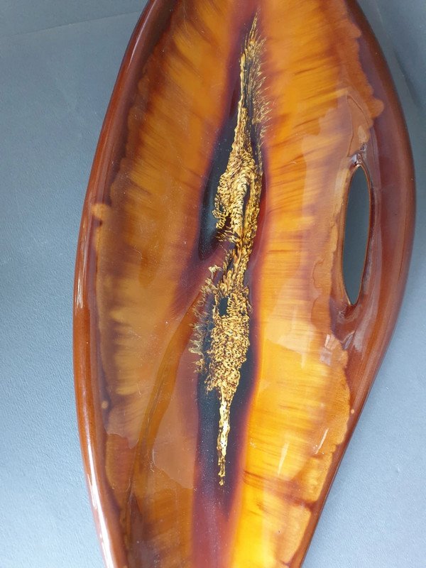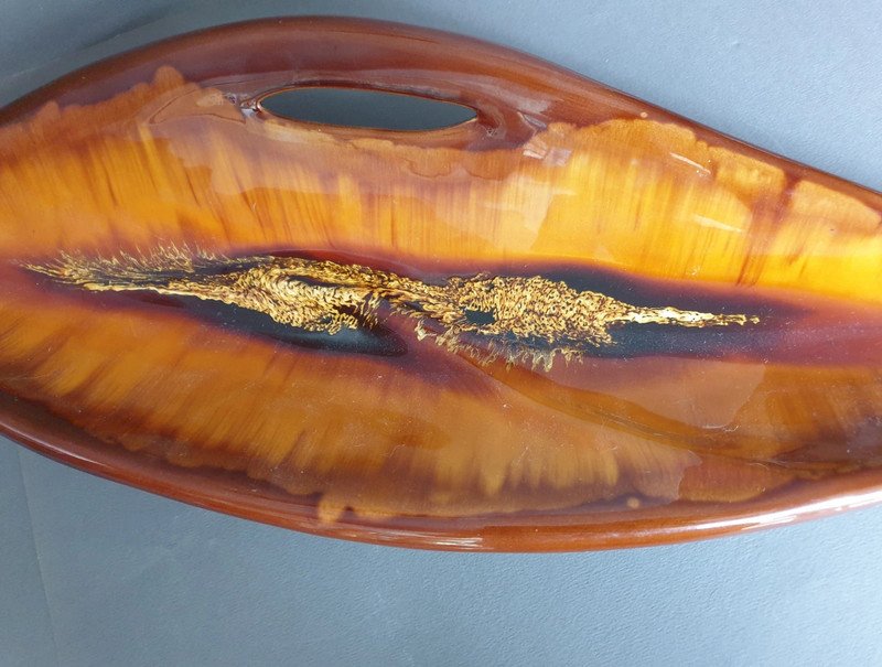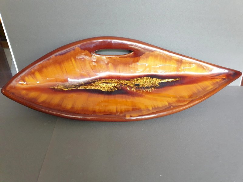 Fruit bowl / Vintage ceramic center piece signed Vallauris, 60 cm long and 22 cm wide, with 2 small chips that are barely noticeable (photos).