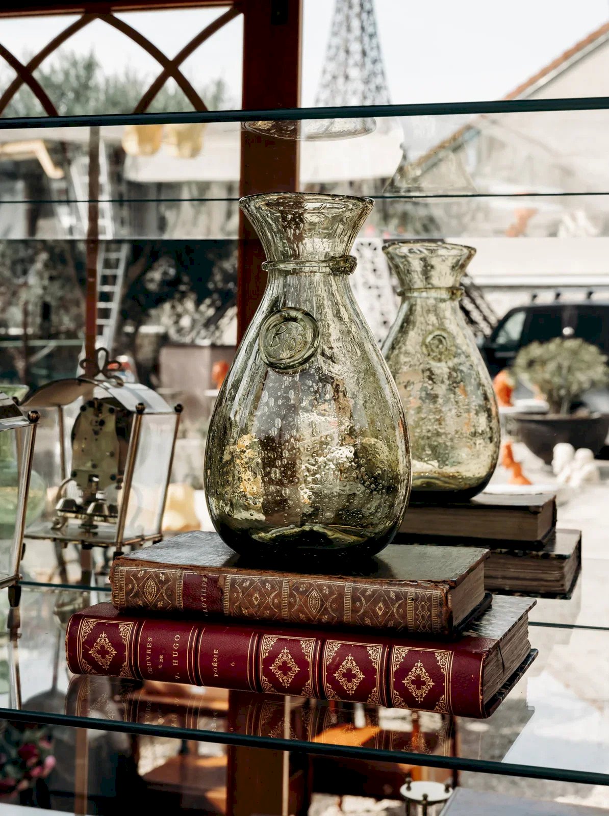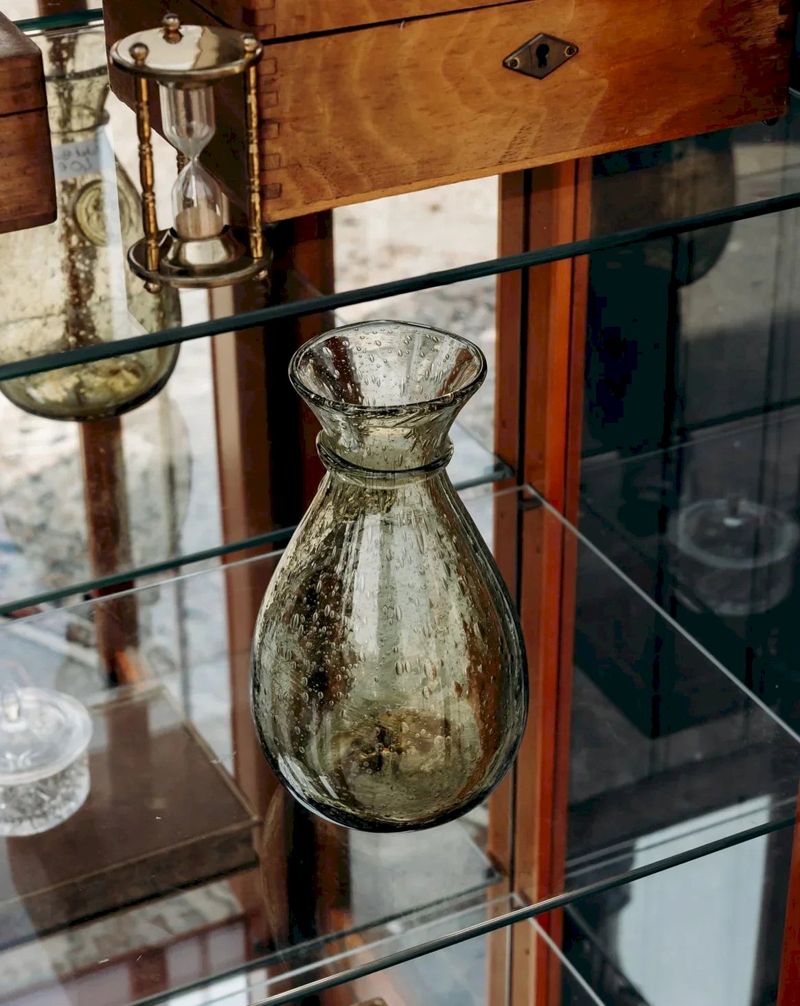 Discover the green blown glass carafe from Biot, a unique handcrafted piece that will add a touch of elegance to your table. Each carafe is signed by the artisan, showcasing their craftsmanship and attention to detail. Its fluid design and shades of green make it a true work of art, perfect for serving your favorite beverages or as a decorative element. Treat yourself to a piece of Biot's artisanal tradition, combining aesthetics and functionality. Height: 20 cm Diameter: 12 cm Condition: Used: Item has been used. Item shows some superficial wear marks, ... Used: Item has been used. Item shows some superficial wear marks, fully operational and functioning properly. It may be a demonstration model or an item returned to the store after a short period of use. Any potential imperfections. Brand: Debongout Type: Thrifted product Material: Glass Style: Country