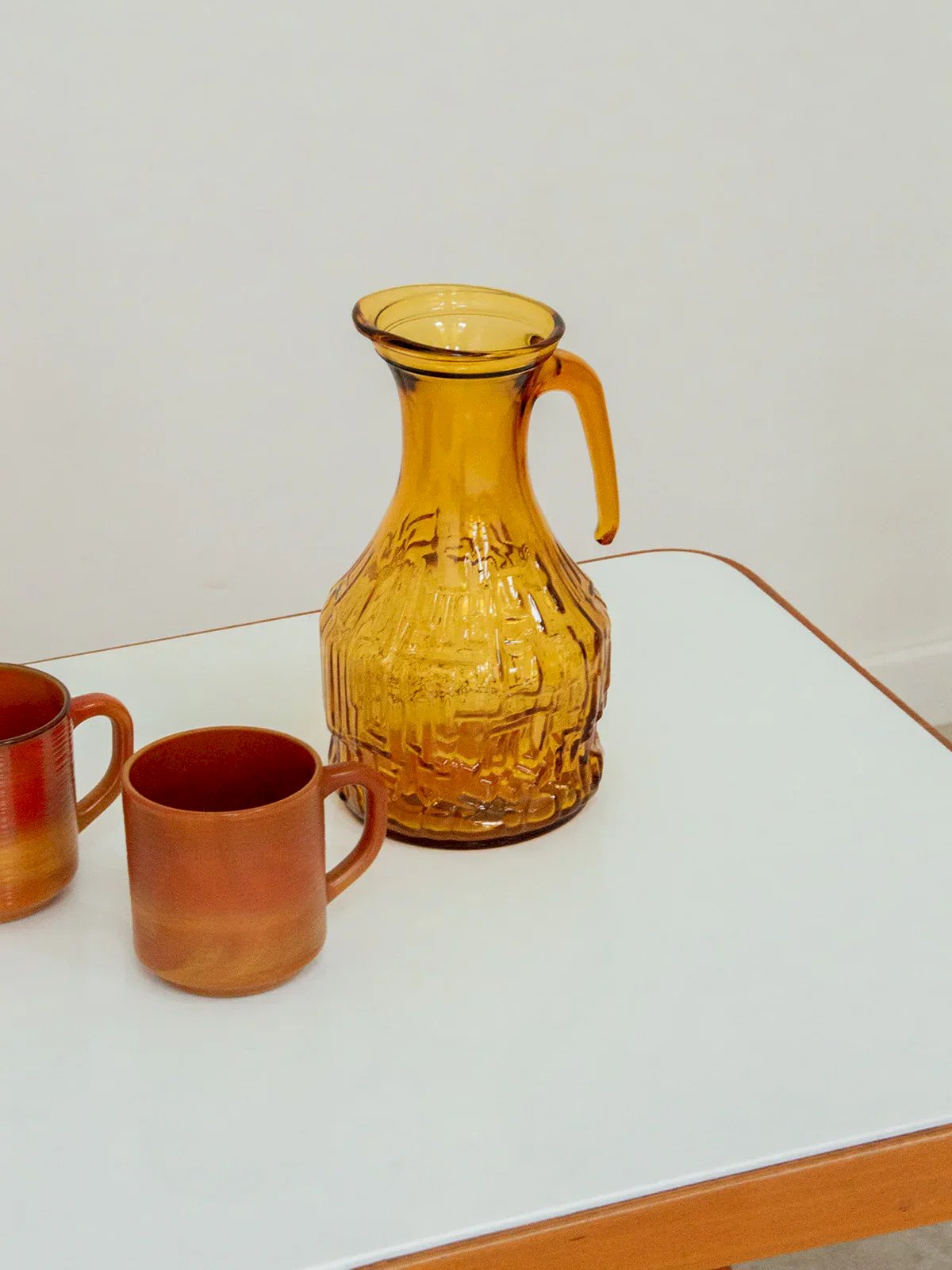 Add a touch of color and elegance to your table with this orange carafe. Its warm shade instantly brightens the space, while its sleek design is enhanced by a delicate little handle for easy handling. Perfect for serving water, juices, or as decorative objects in their own right, it fits perfectly with all interior styles. Sold individually, 2 quantities are available. Length: 23 cm Width: 13 cm Condition: Used: Item that has been used. Item showing some signs of superficial wear... Used: Item that has been used. Item showing some signs of superficial wear, fully operational and functioning correctly. It may be a demo model or an item returned to the store after a short period of use. any imperfections. Brand: Debongout Type: Vintage product Material: Glass Style: Country